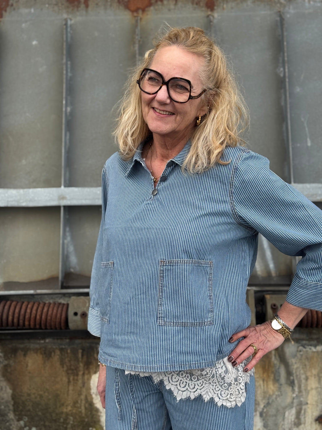 Culture Ayna Shirtjacket - White/Blue Stripe