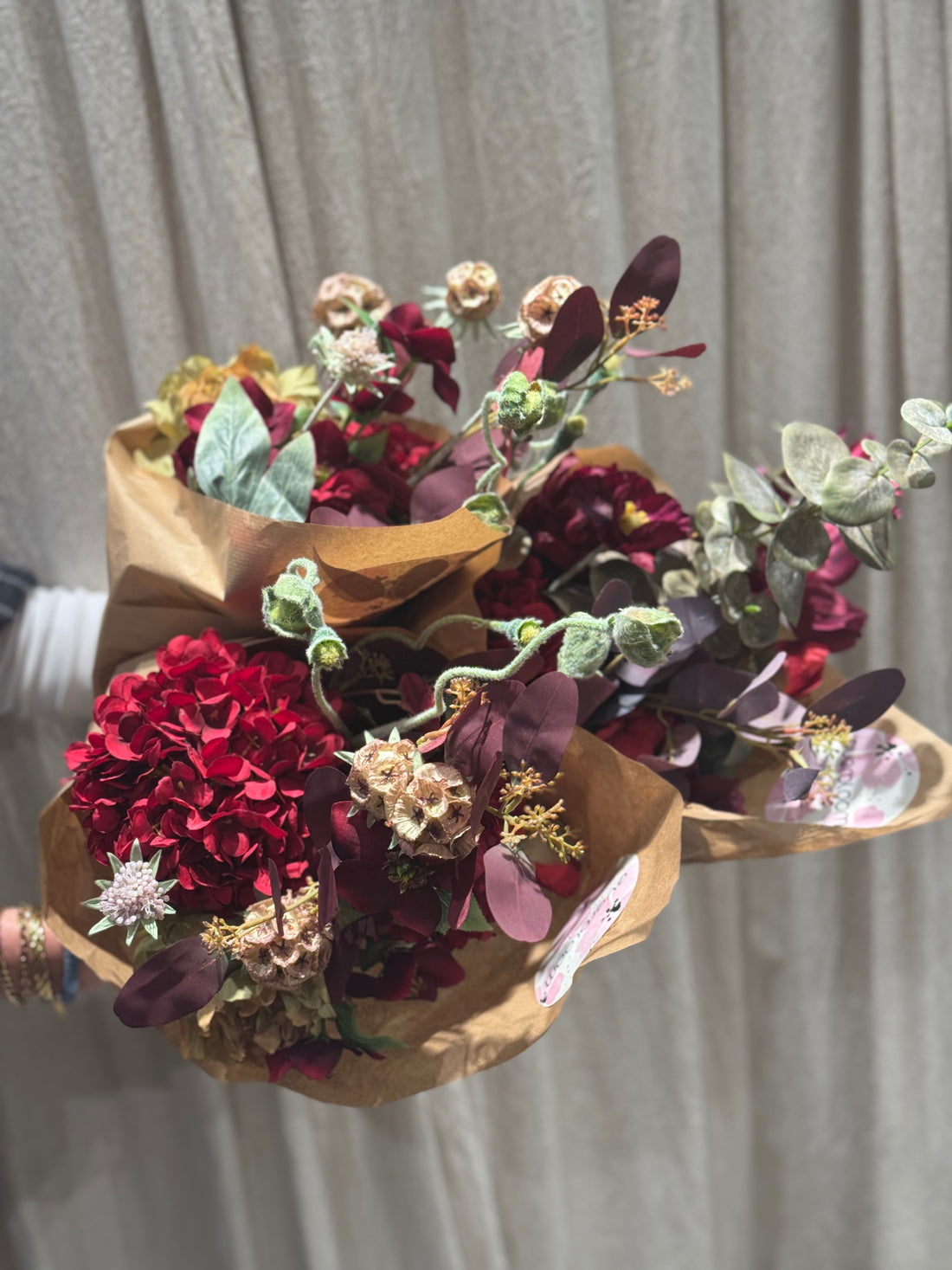 Leder du efter en smuk, langtidsholdbar buket, der ser naturlig ud – uden vand og visne blade? Vores evighedsbuketter er kunstige buketter bundet i kvalitetssilke (latexsilke), metal og holdbare plastdetaljer. Hver færdig buket er sammensat af en blomsterbinder for et naturtro udtryk – klar til at sætte direkte i din vase.
