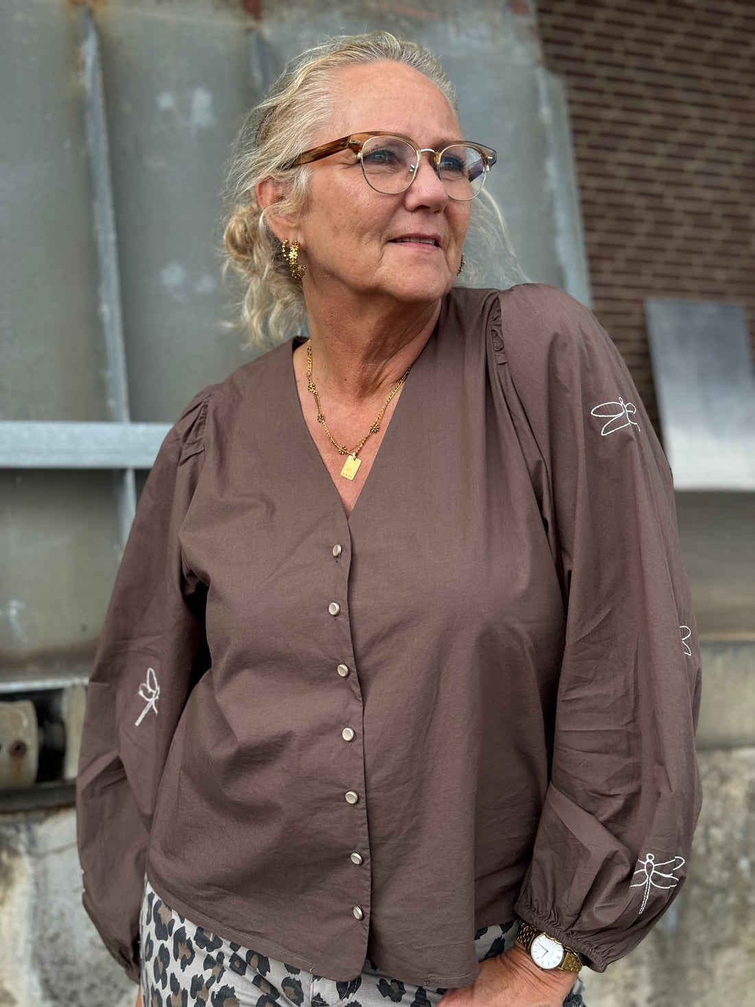 Black Colour Annie Mesh Blouse - Mocca Marble