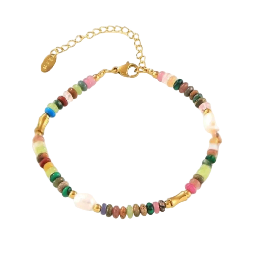 Kaia Farverig Bead Armbånd - 18K Guldbelagt