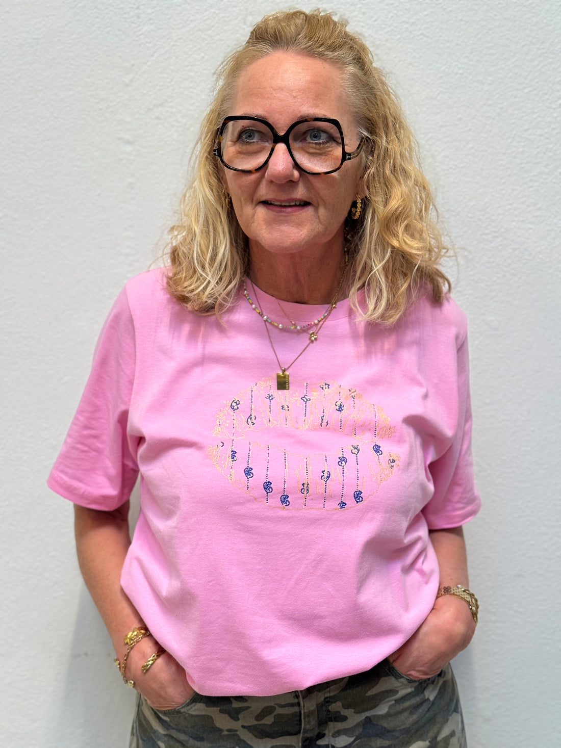 Kaffe Hally T-shirt - Chalk/Pink Power