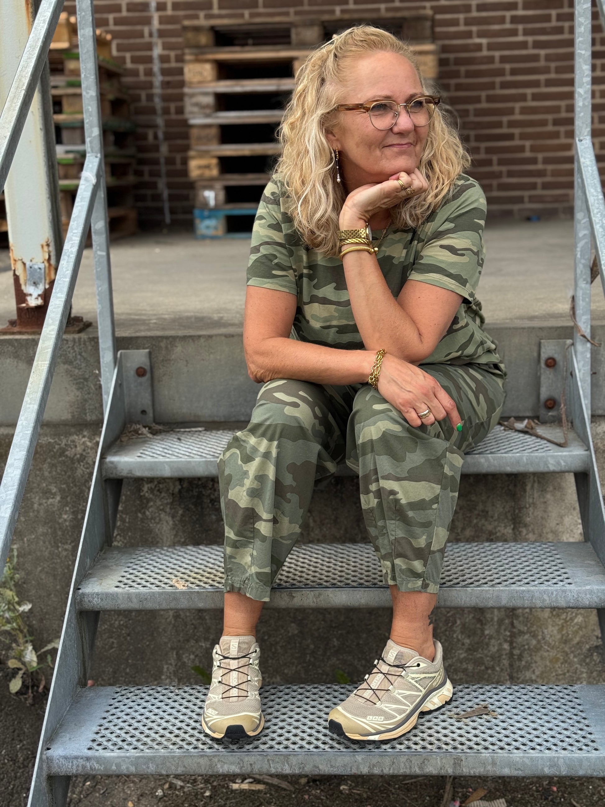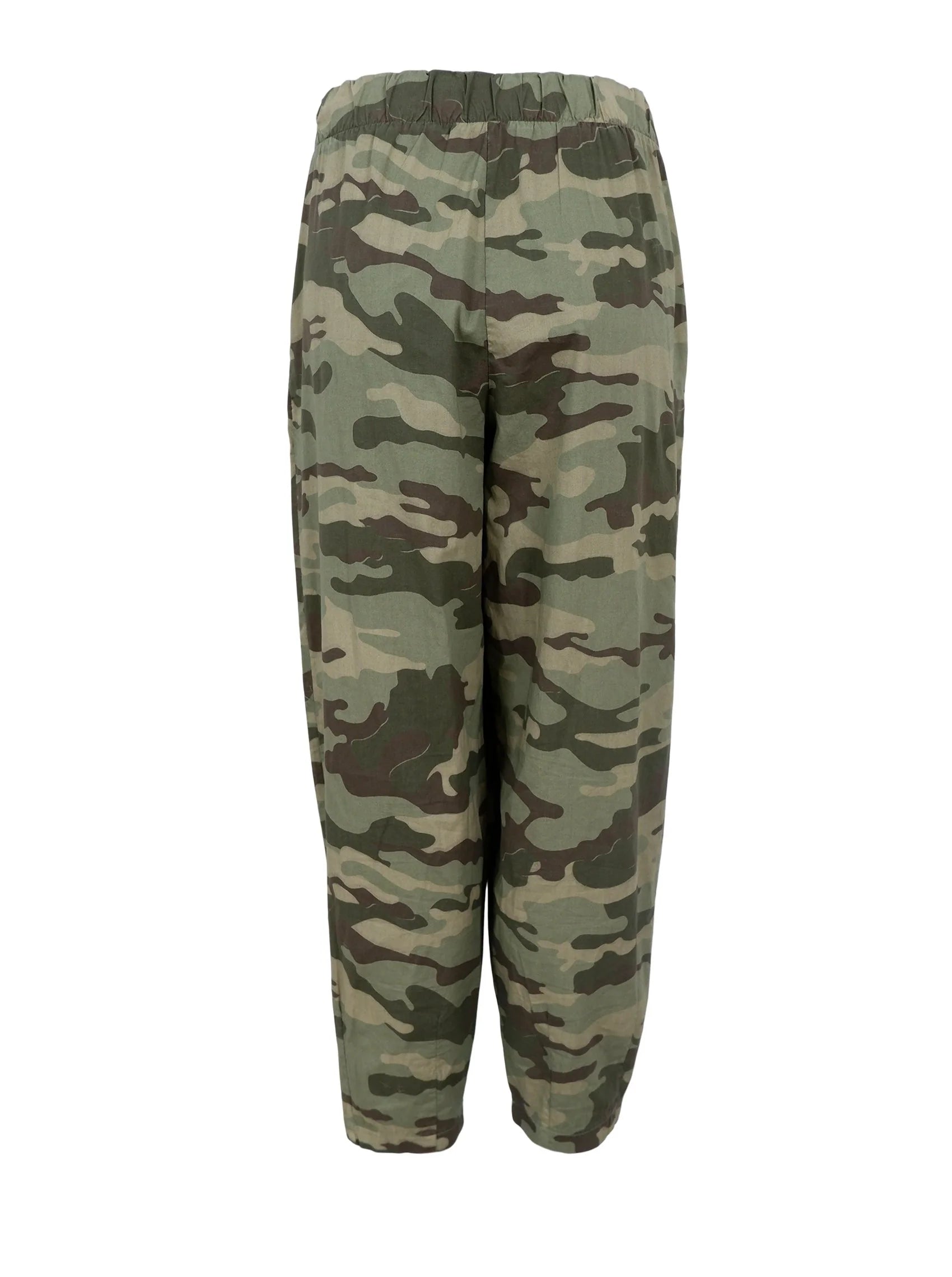 Disse lækre bomulds bukser fra Black Colour er i det smarteste camouflageprint. Bukserne har elastik i taljen og lommer i siderne. Benene har en let tapering, så de går en smule ind forneden.