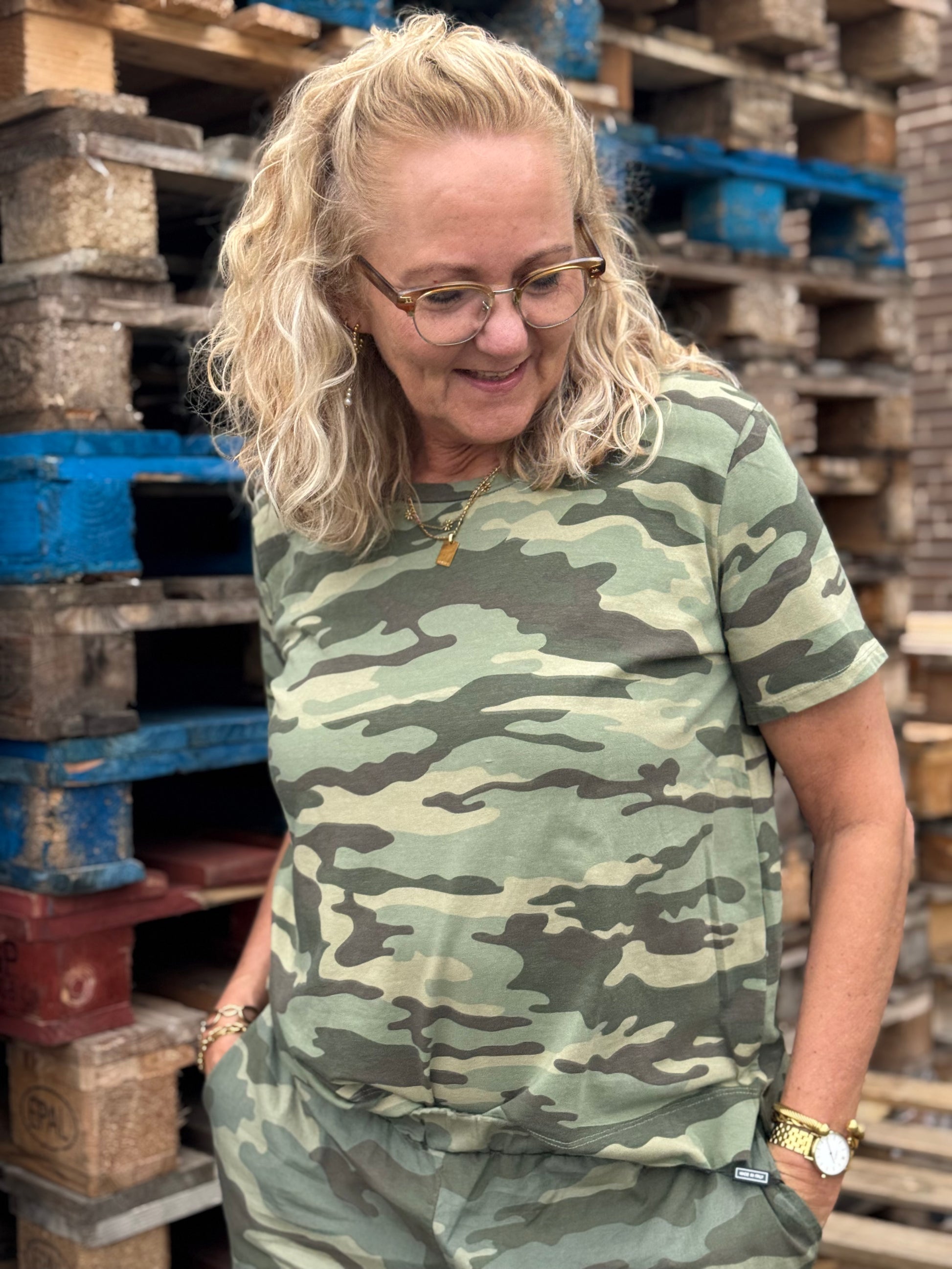 Denne lækre T-shirt fra Black Colour er i den smukkeste mørkebrune leoprint. T-shirten har rund hals og korte ærmer.