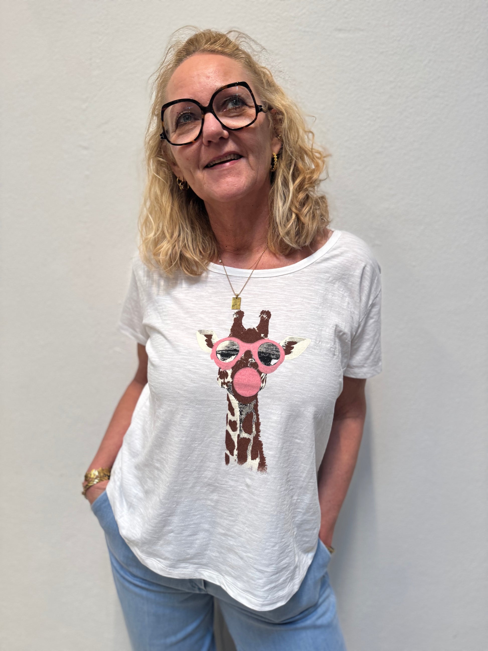 Denne super lækre T-shirt fra Costa Mani er et must have. T-shirten har en fin rund hals og klassiske T-shirt ærmer. På fronten er der et fedt motiv af et dyr med solbriller og tyggegummiboble.