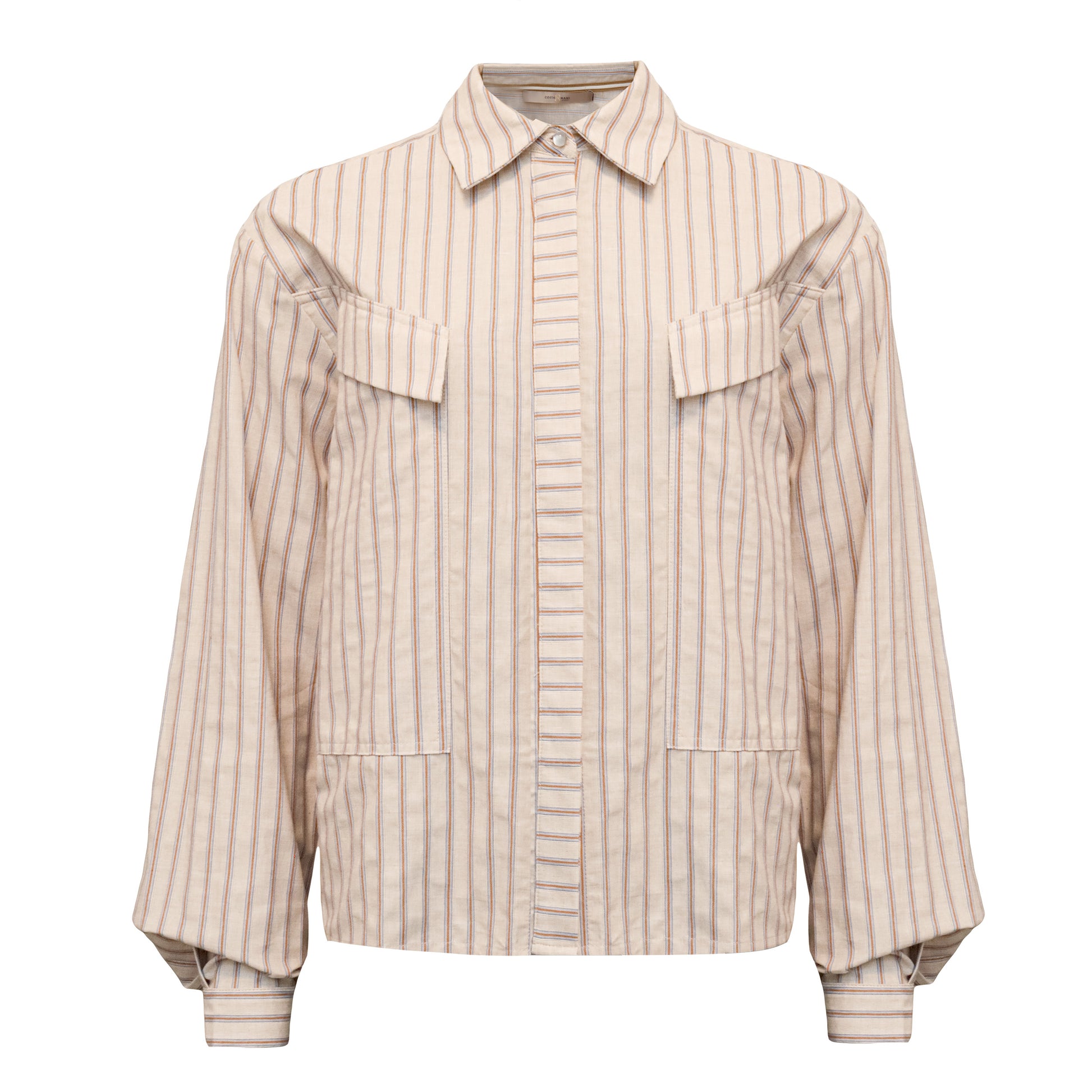 Denne cool stribet skjorte i boxy fit kan redde en hver tøjkrise. Skjorten har en klassisk skjortekrave og skjult knaplukning, hvor den øverste som er synlig er en perle i marmor look. Skjorten har brystlommer med skråflap og lange ærmer med en smal manchet.
