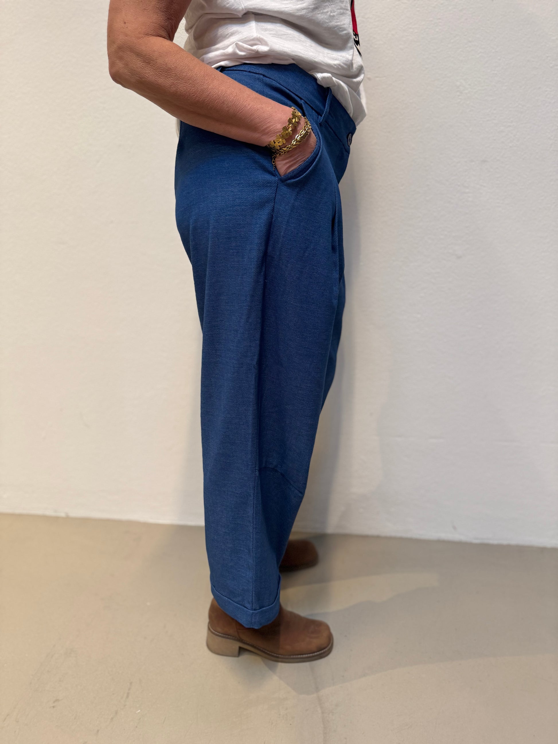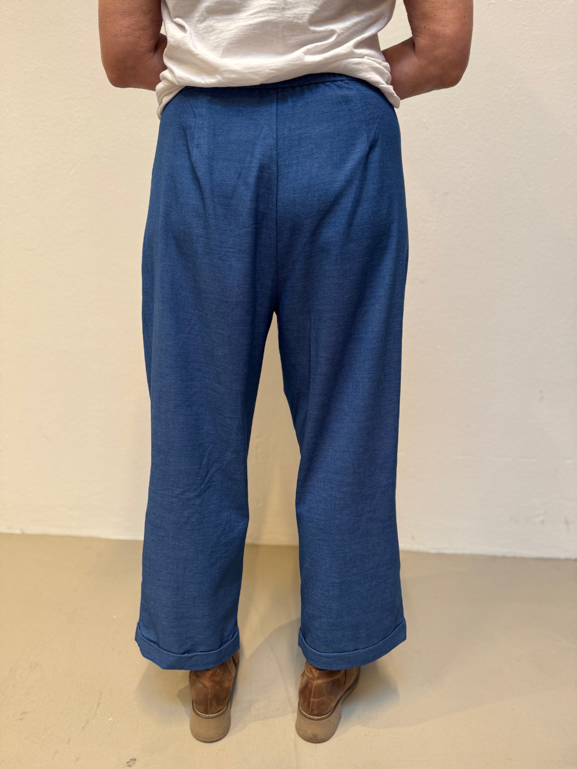 Disse lækre klassiske bukser har et elegant fald. Bukserne har fastlinning med klassisk knaplukning og en lille diskret elastik bagpå i taljen. De lige ben med diskrete pressefolder og skrålommer giver et stilrent look.