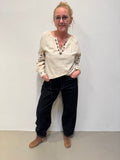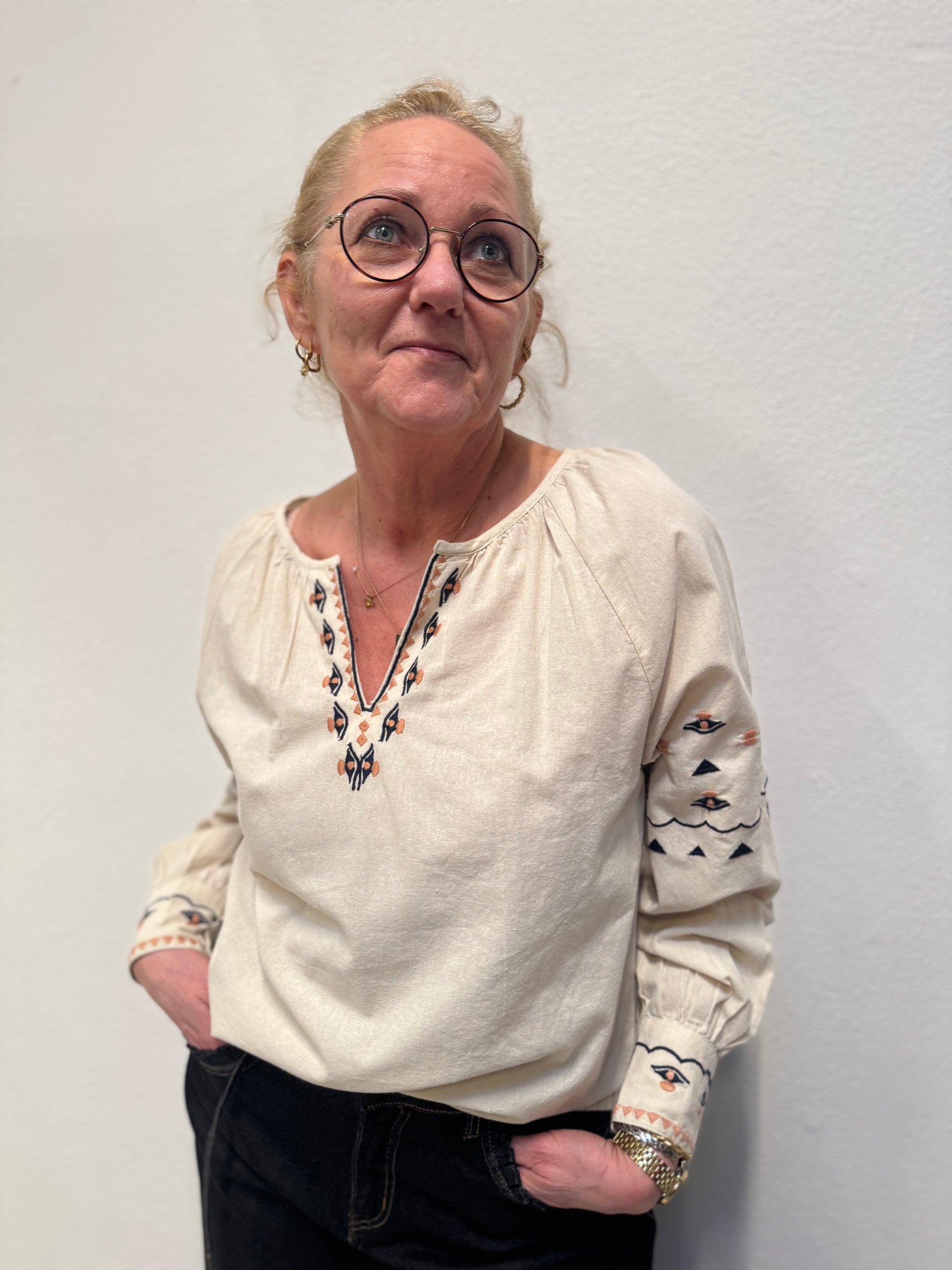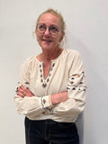 Denne fine bluse fra Cream er fyldt med de smukkeste broderinger. Blusen har en fin lille V-udskæring og en lille manchet i ærmet.