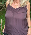 Super lækker top, med fine blondedetajler foran og med tynde stropper. Toppen har mange gode anvendelses muligheder og kan bruges til enhver lejlighed.