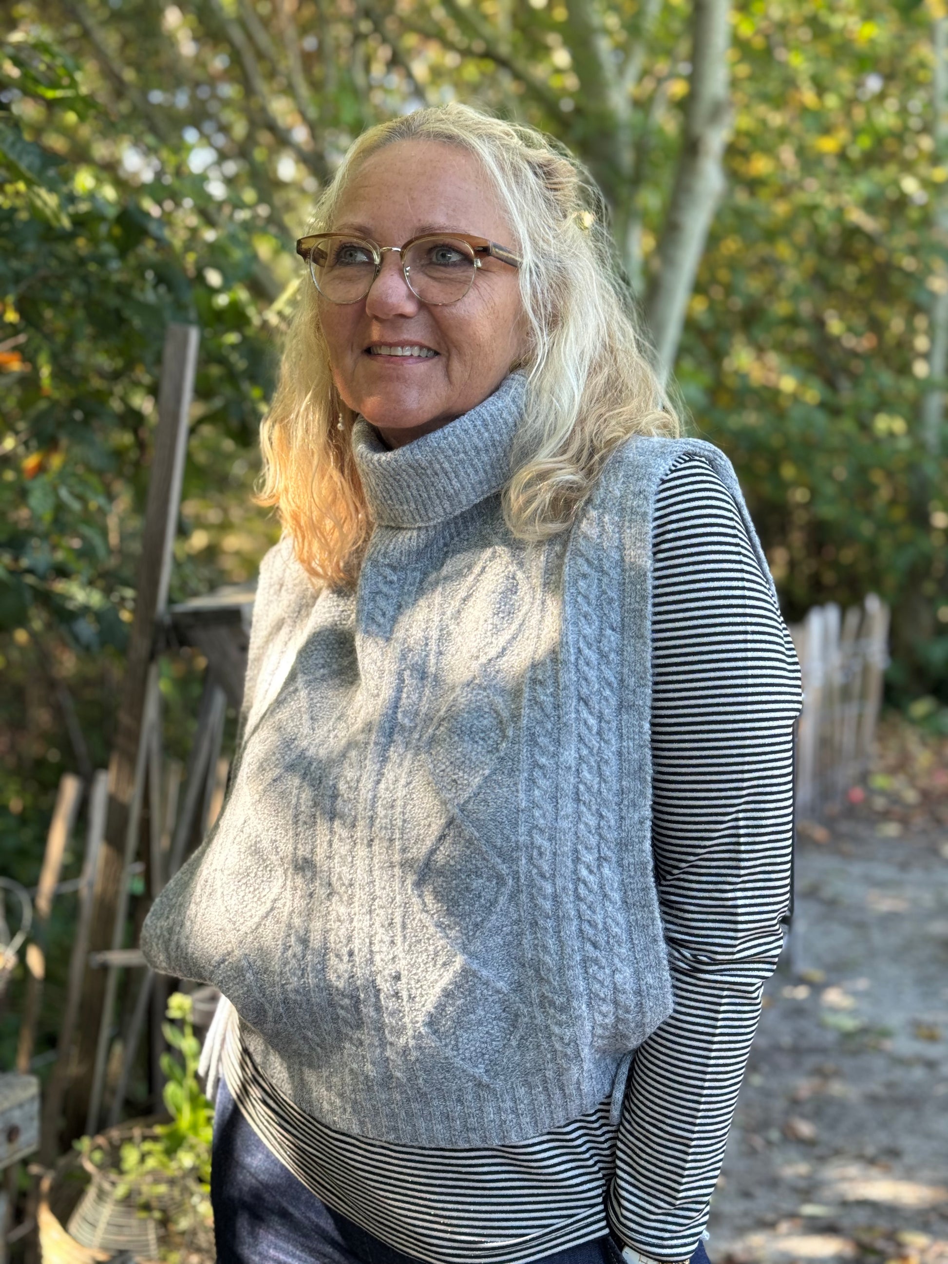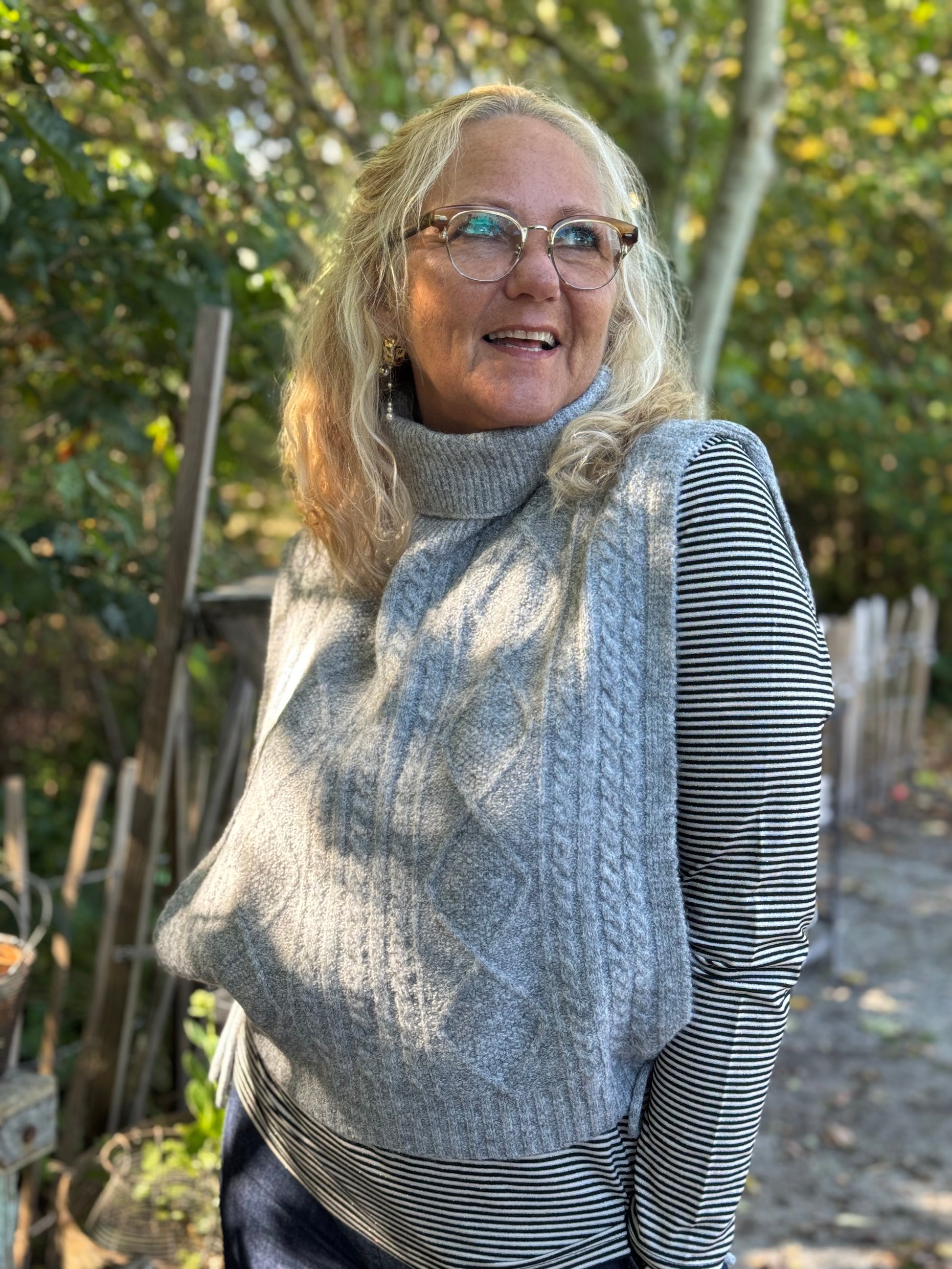 Smart strik vest cream, som kan pifte et hver outfit op. Vesten er i det lækreste strik, har en halvhøj hals og bindes i siderne.