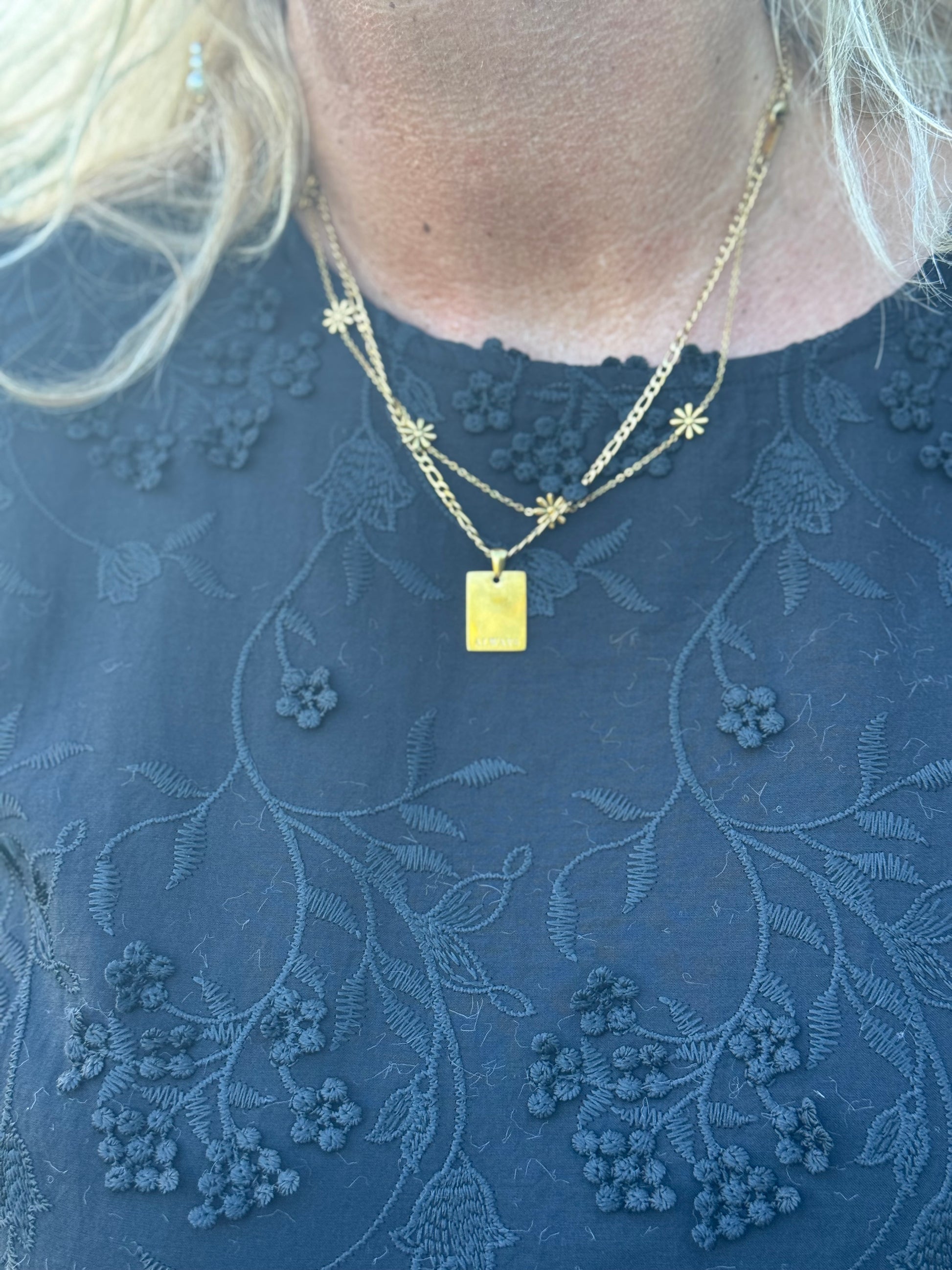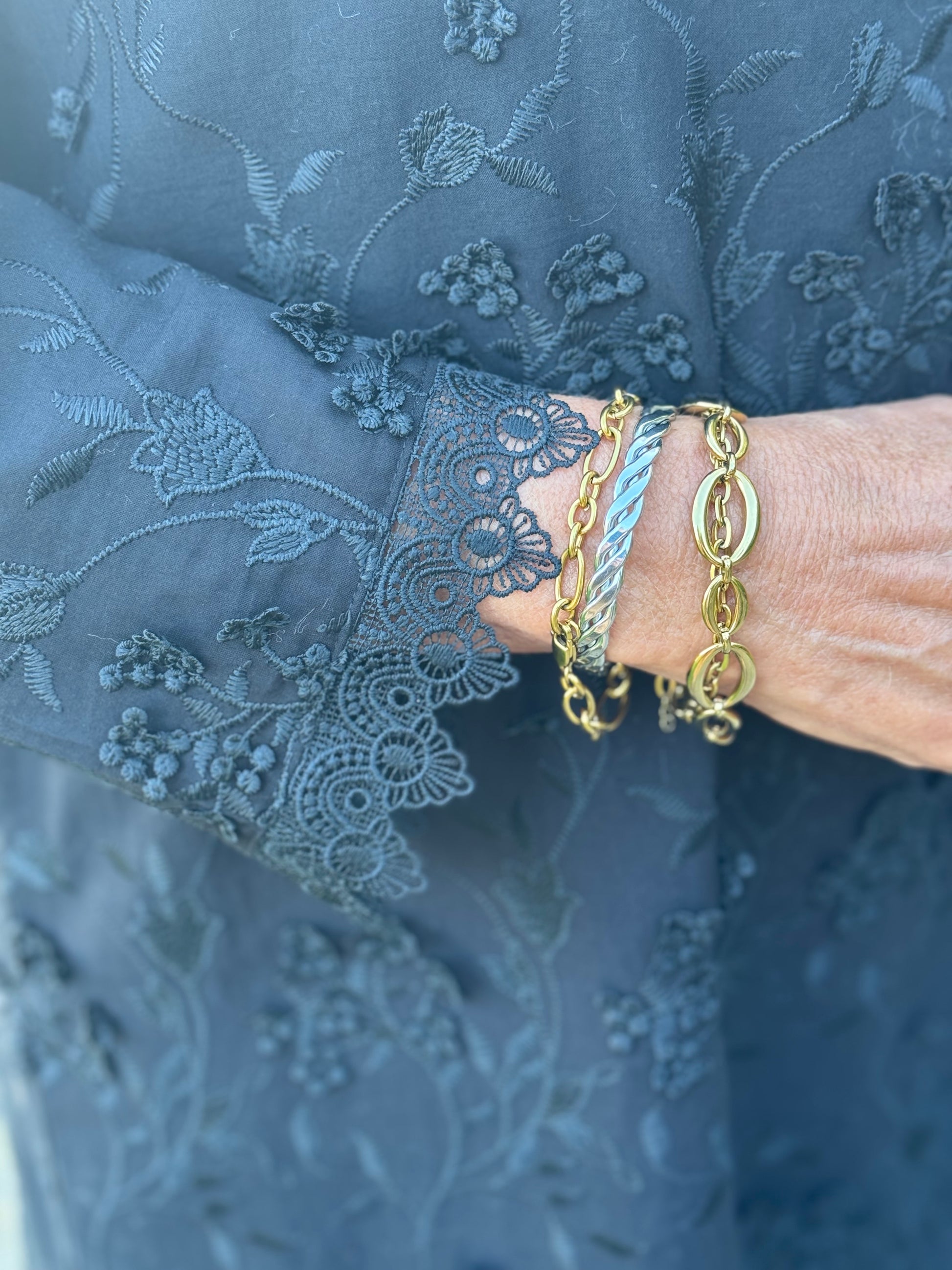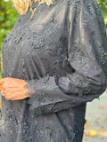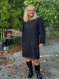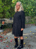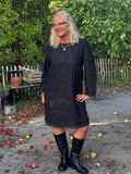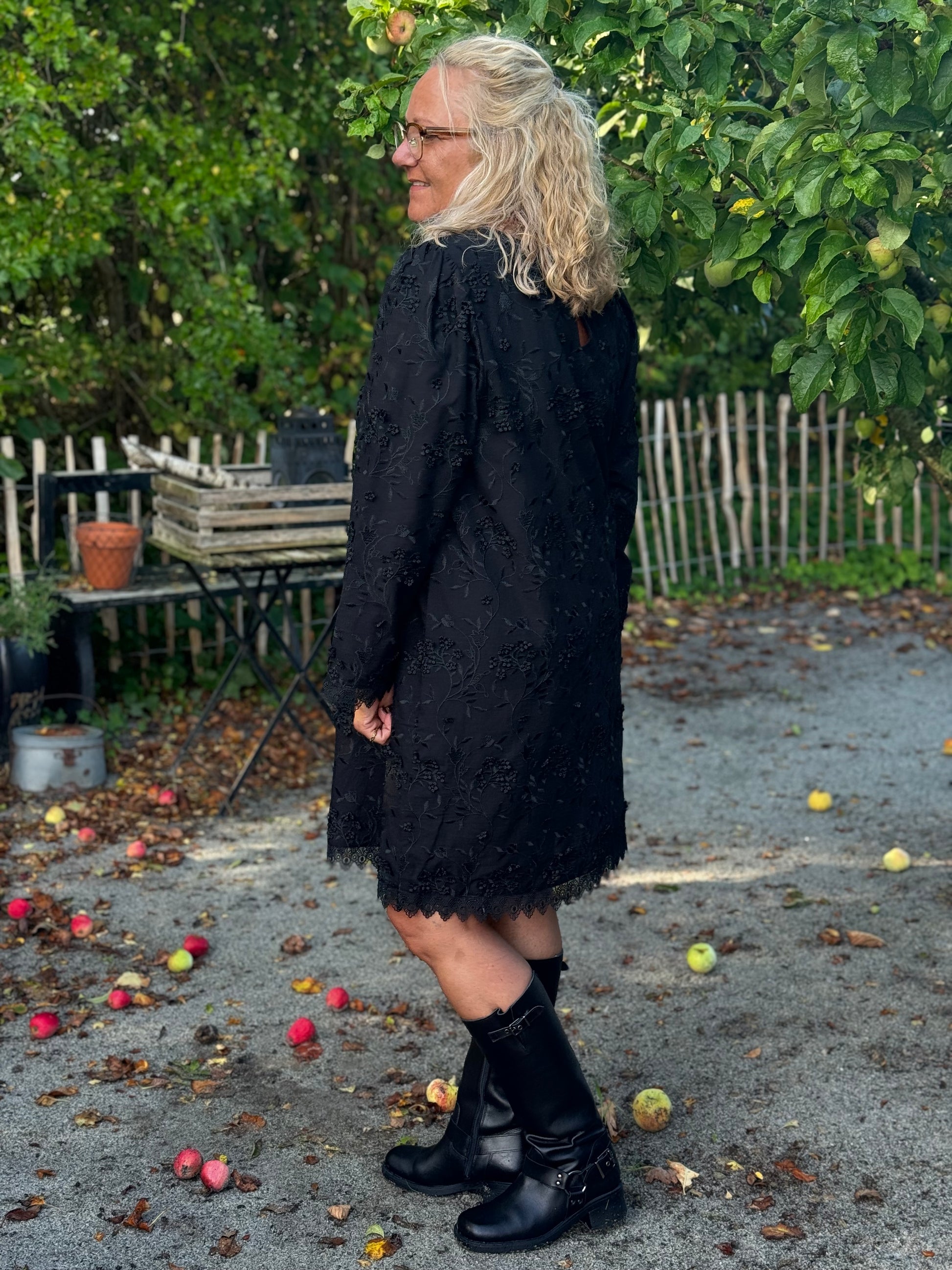 En sort kjole kan redde en hver tøjkrise og denne er ingen undtagelse. Kjolen har det smukkeste print i stoffet og blonde på ærmet og i bunden. Den har en find rundhals og lukkes med en knap bagpå.