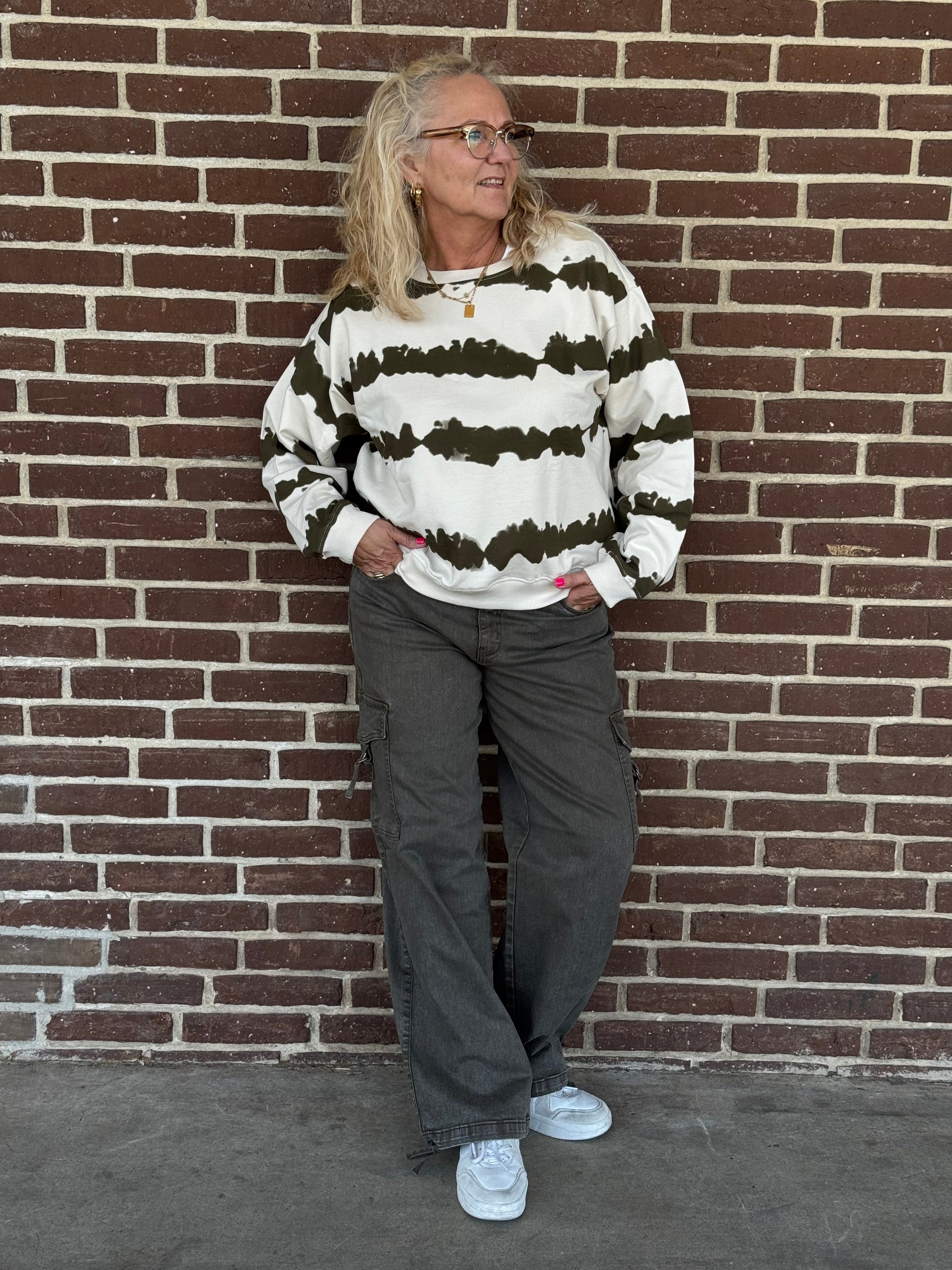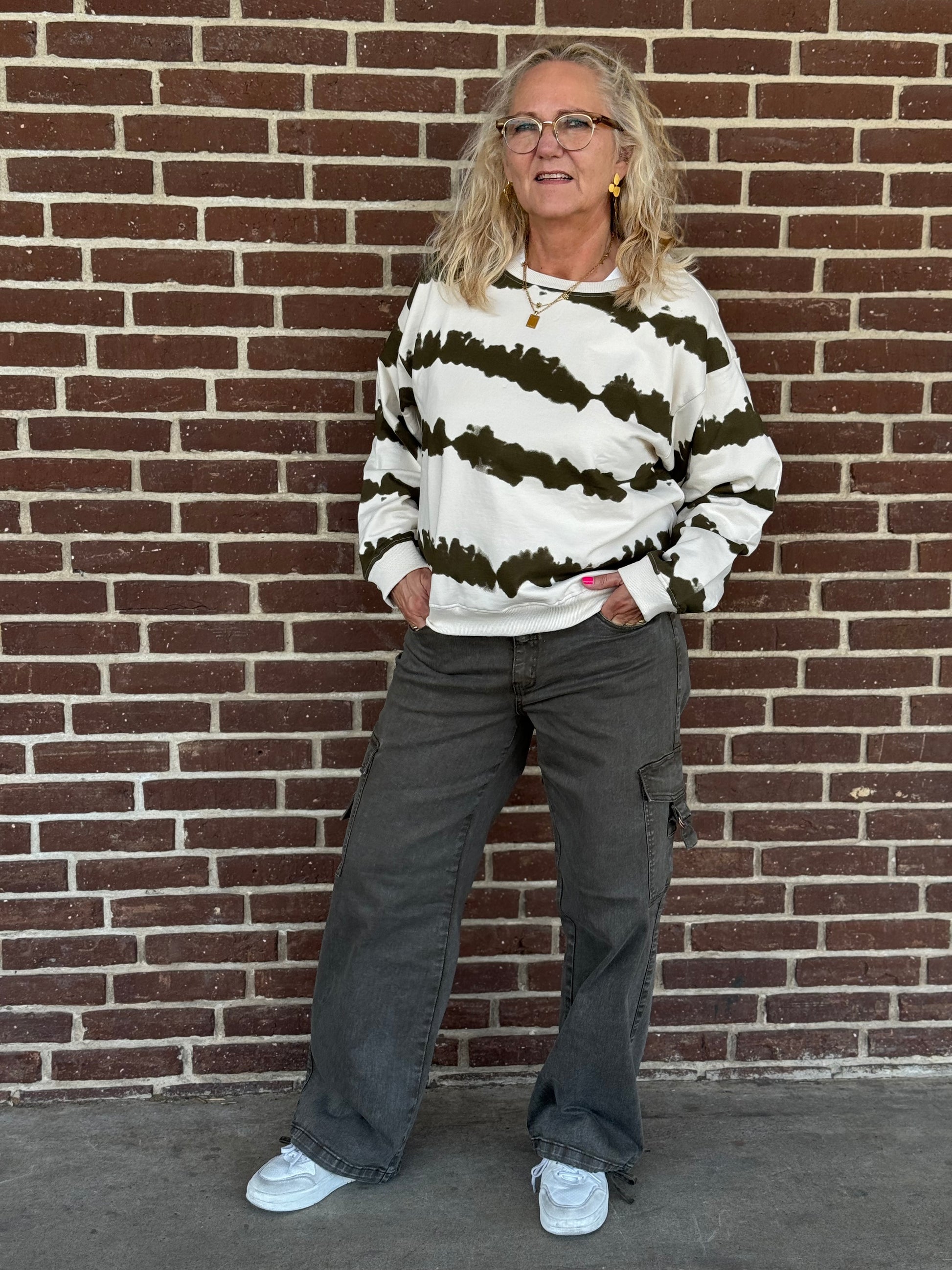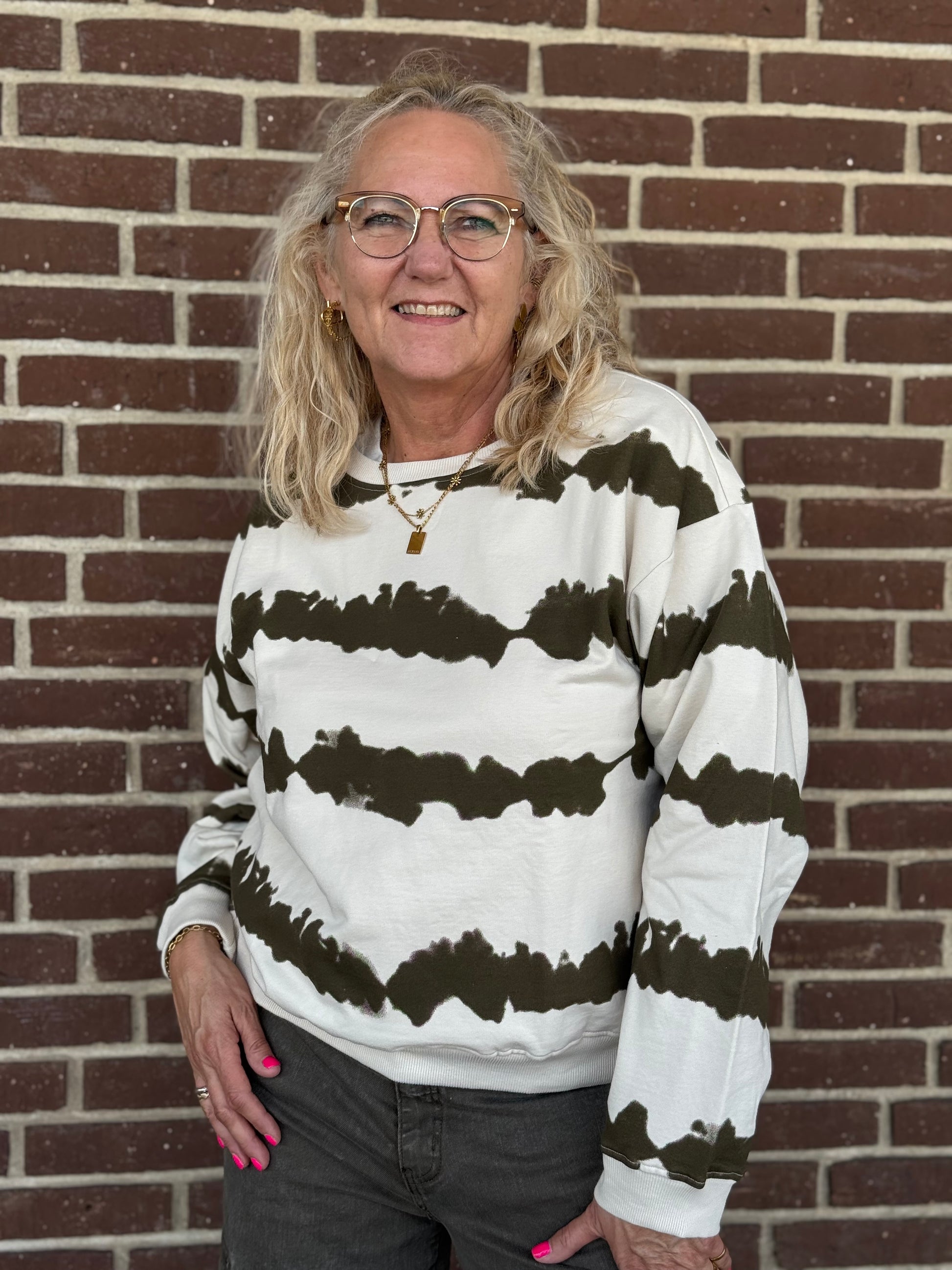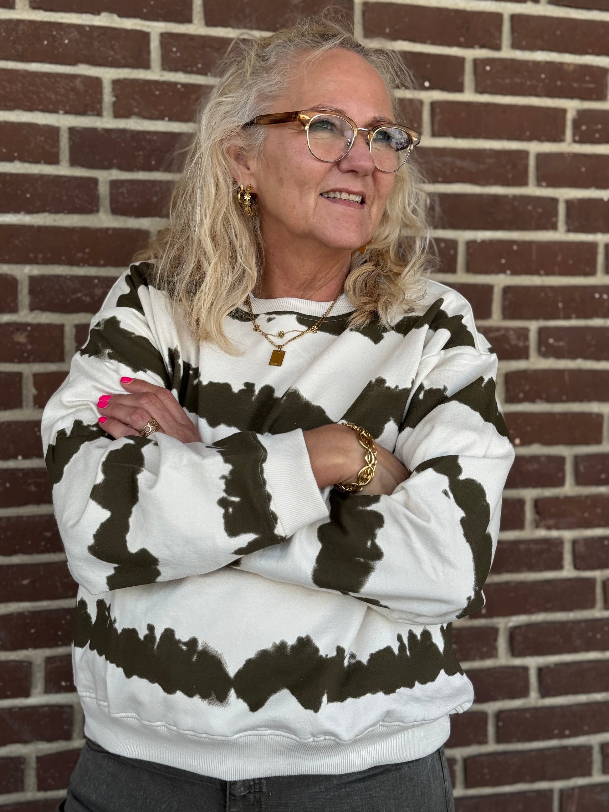 Lækker blød sweatshirt i det smarteste tie diy print. Sweatshirten har rundhals med ribkant, som går igen ved ærmerne og forneden.