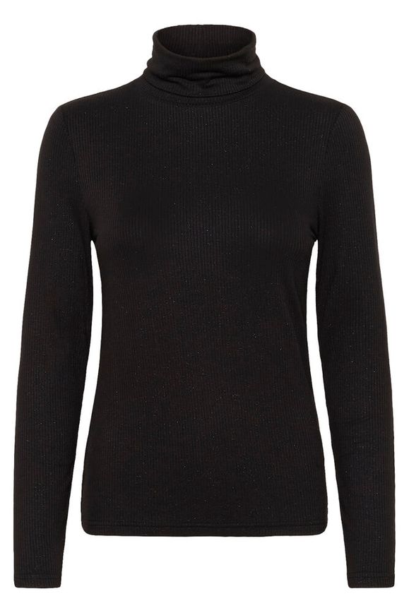 Denne basic bluse med turtleneck er essentiel i din garderobe. Blusen er slim fit med ribstruktur.
