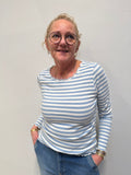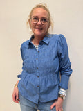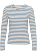 Denne fine stribet bluse med lange ærmer fra Cream er et must have. Blusen har en fin rund halsudskæring med afsluttende bølgende effekt, som går igen i ærmet og forneden.