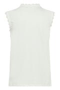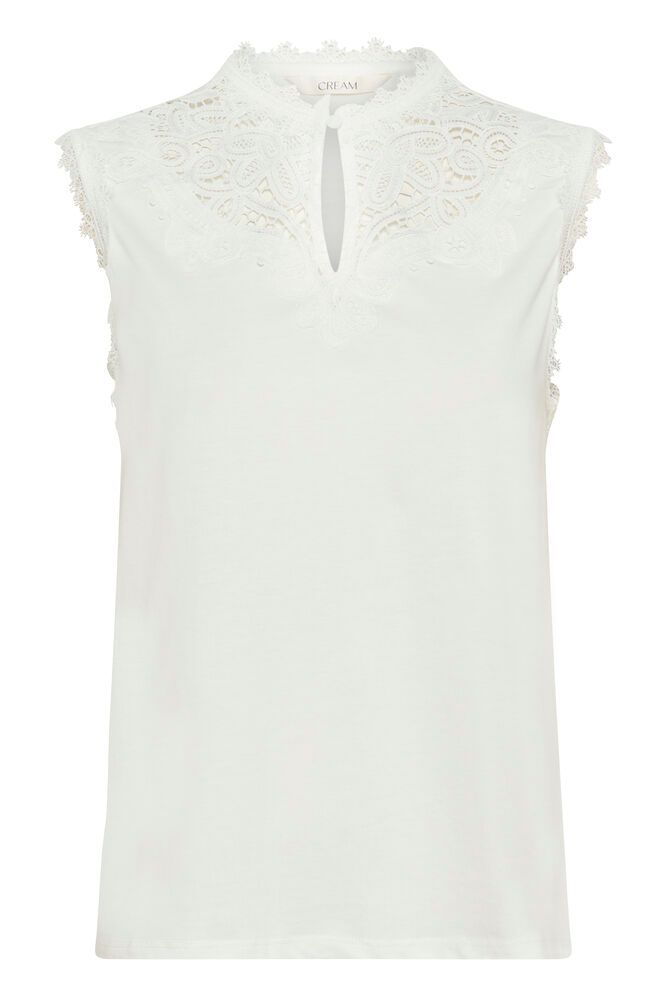 Denne smukke top fra Cream er det ideelle valg til en hver lejlighed. Toppen har en fin lille høj hals med det fineste blonde stykke som åbnes i en lille fin oval åbning. Toppen er ærmeløs.