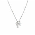 Denne delikate halskæde har to lagdelte korsvedhæng og en lille sten. Halskæde har en klassisk karabinlås og forlænger.