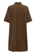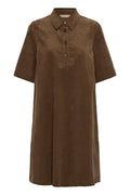 Denne lækre fløjlskjole fra Culture er en sand klassiker. Kjolen har en lille krave og en lille knaplukning. Kjolens har en god længde til lige over knæet, korte ærmer, samt lommer i siderne.