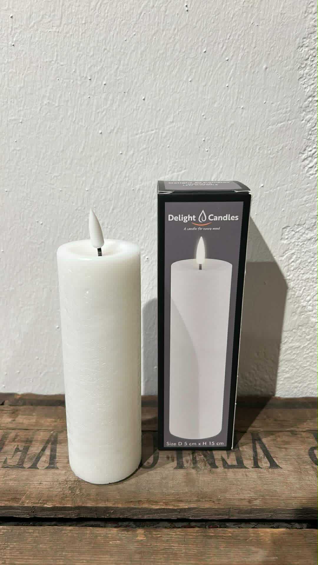 Et skønt indendørs LED lys betrukket med rustik stearin. Desuden har lyset en fordybning i toppen, der gør det mere livagtigt. Brug lyset alene i en stage, eller sammensæt dem på et fad eller til en dekoration på middagsbordet.