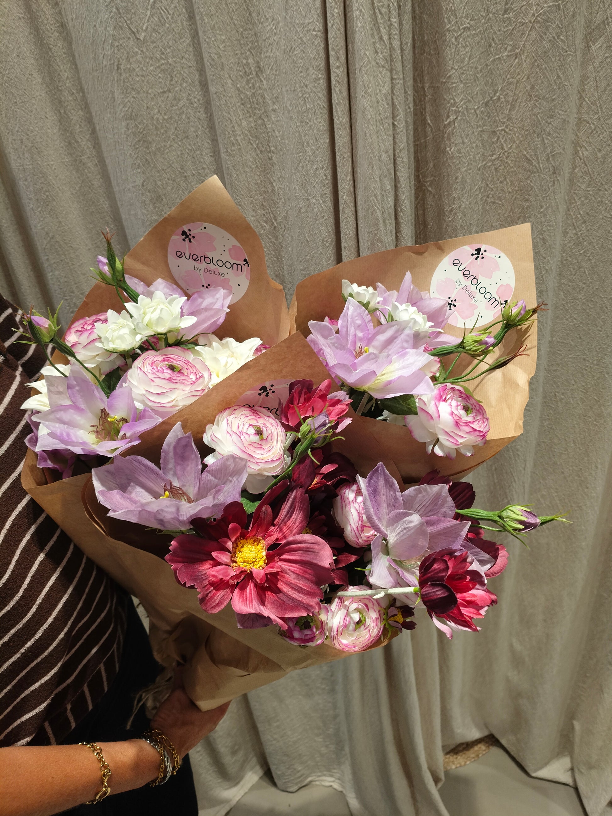 En smuk evighedsbuket bundet i kvalitetssilke og nøje sammensat af en professionel blomsterbinder i Danmark. Hver buket består af de flotteste silkeblomster i harmoniske farvekombinationer og kan variere i blomstersorter – så du altid får et unikt og naturtro udtryk.
