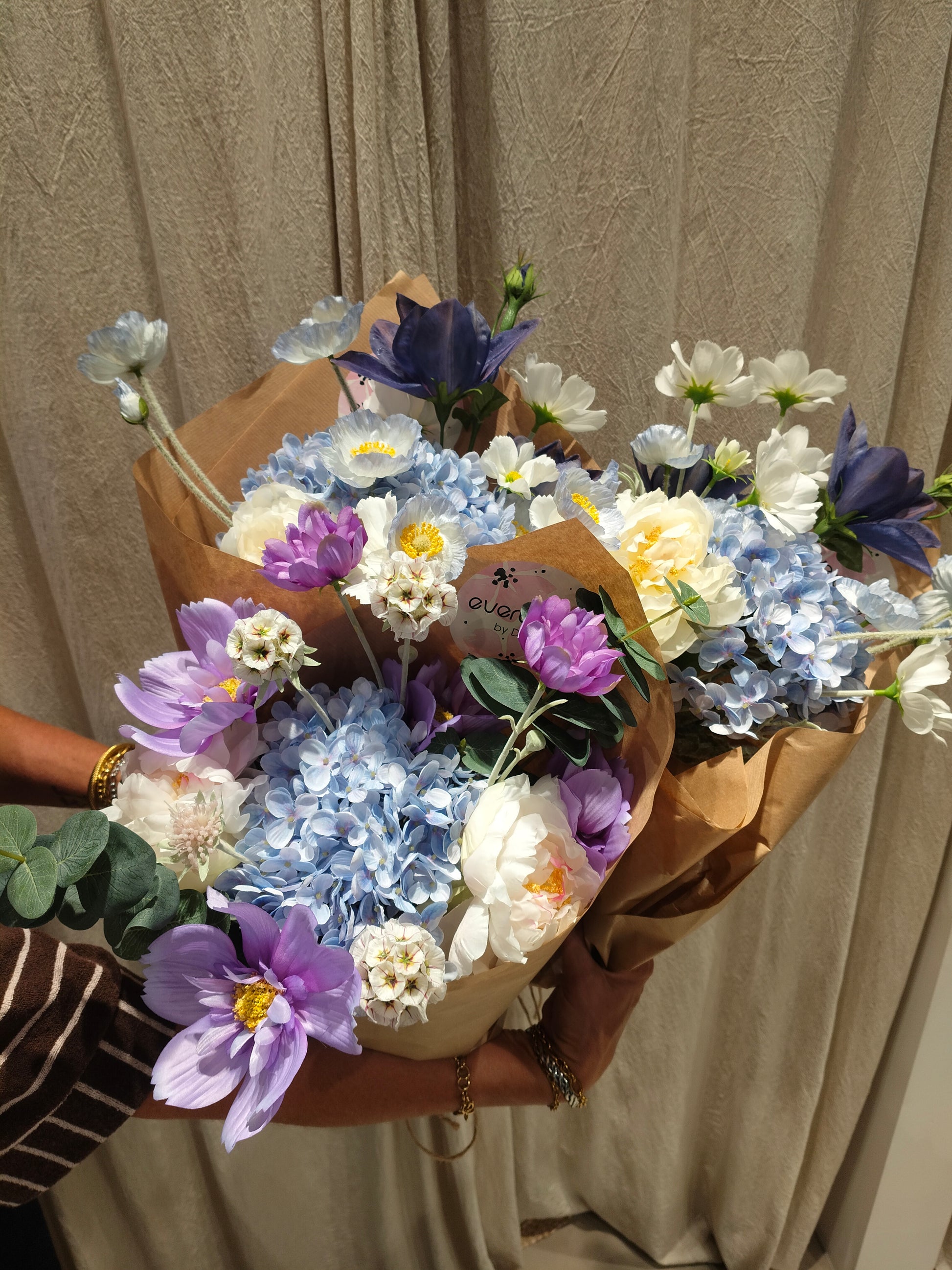 En smuk evighedsbuket bundet i kvalitetssilke og nøje sammensat af en professionel blomsterbinder i Danmark. Hver buket består af de flotteste silkeblomster i harmoniske farvekombinationer og kan variere i blomstersorter – så du altid får et unikt og naturtro udtryk.
