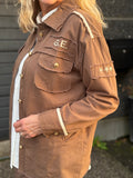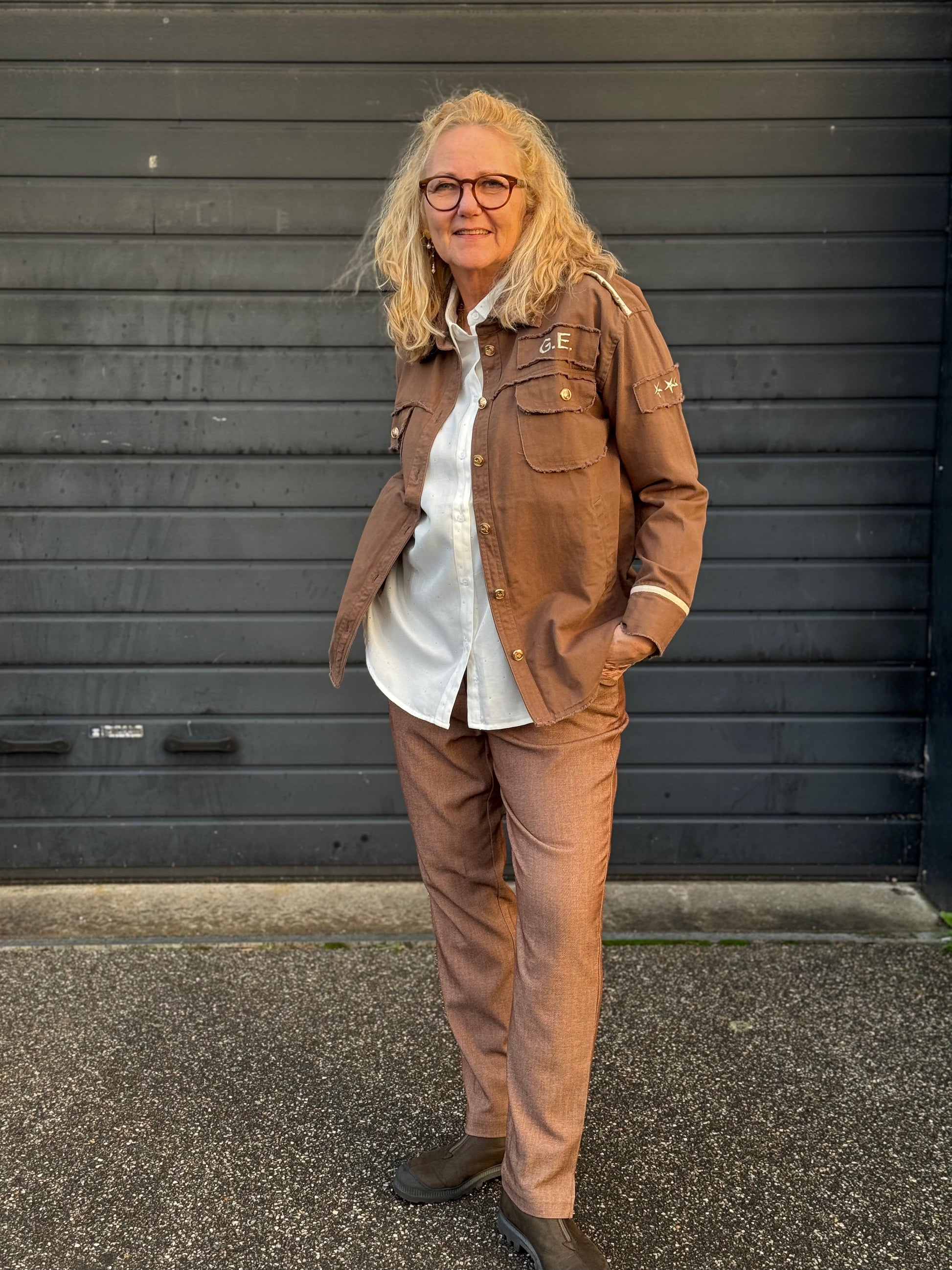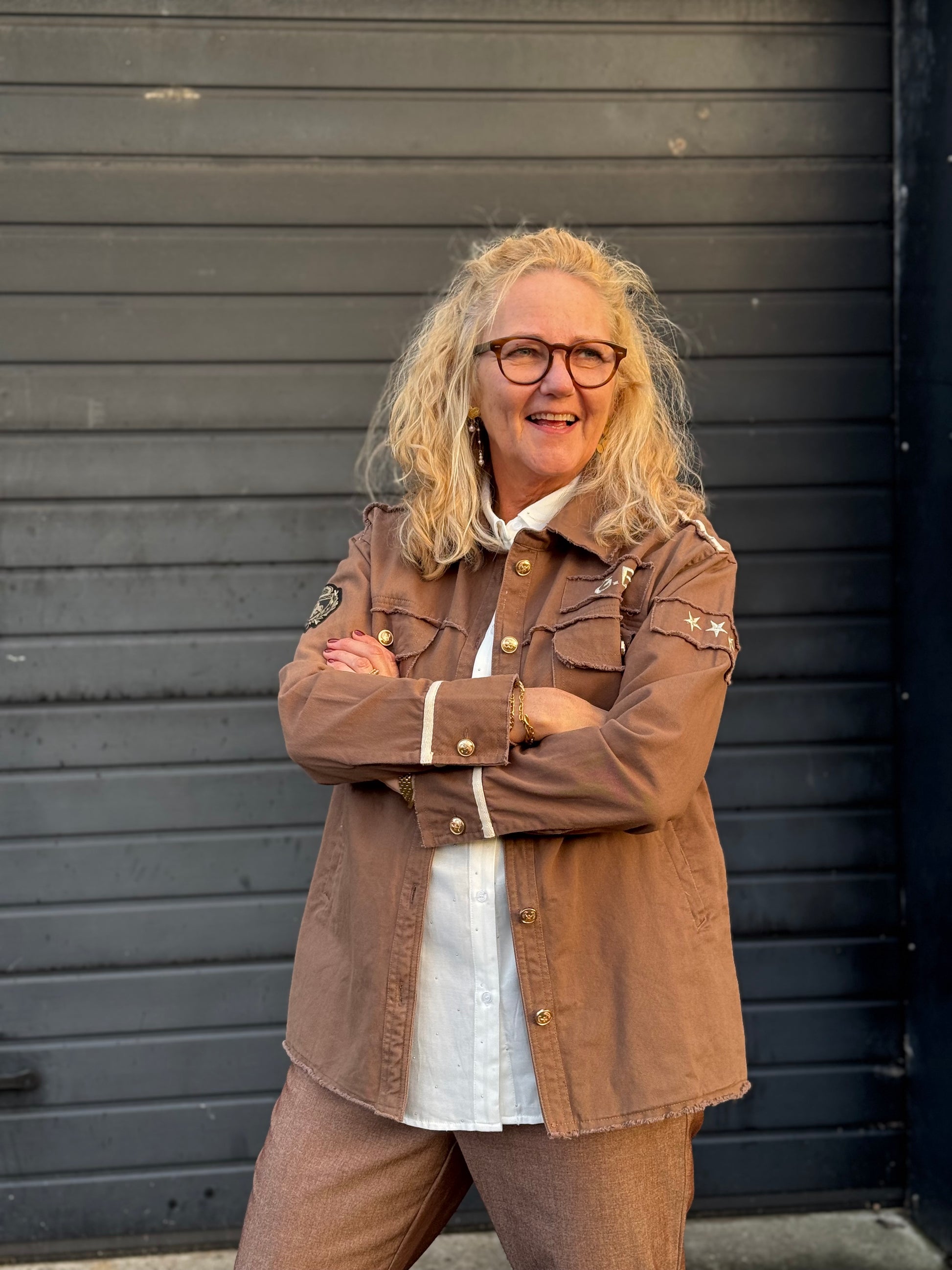Denne cool jakke fra Gaspar er fyldt med de lækreste detaljer. Jakken har en lille krave og lukkes med gyldne knapper. Den har flosset kanter, brystlommer og et badge på det ene bryst.