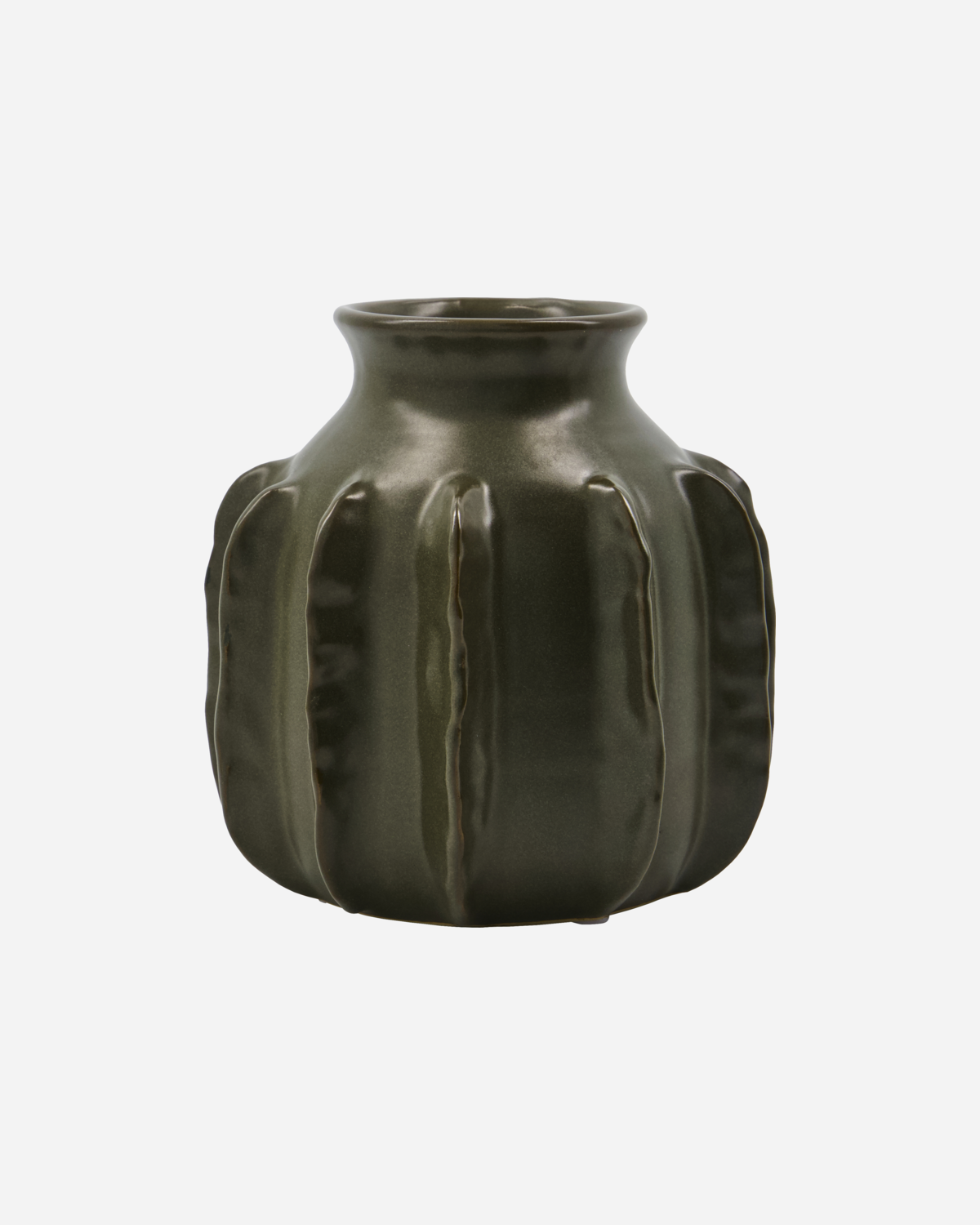 Her får du en smuk vase med en skulpturel form, som helt sikker vil skabe blikfang i hjemmet. Vasen har en smuk mørkegrøn glasur som giver en wauw effekt.