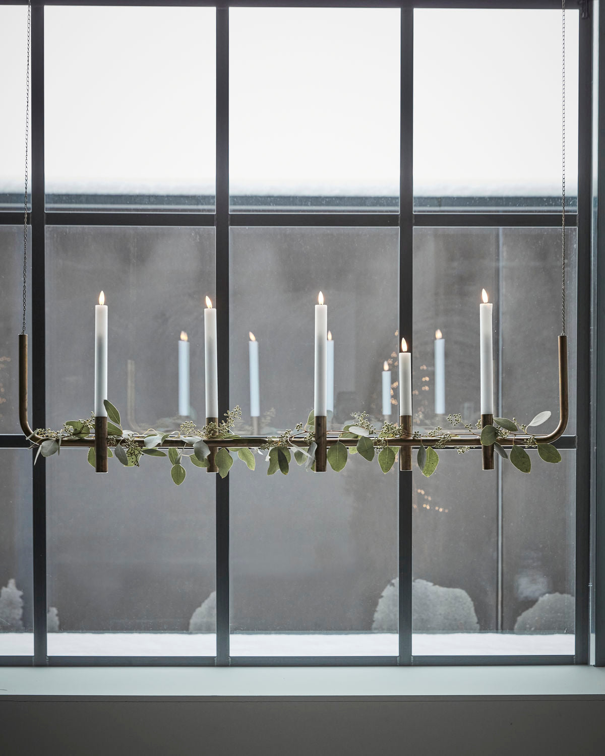 Skab en indbydende og varm atmosfære med denne elegante lysestage i antik sølvfinish fra House Doctor som kan hænges - perfekt i vinduet eller over spisebordet. Stagen er håndlavet og har et moderne udtryk - tilføj noget personlighed ved at pynte den med dit ynglings julepynt. Stagen passer til lys med en diameter på 2,2 cm.