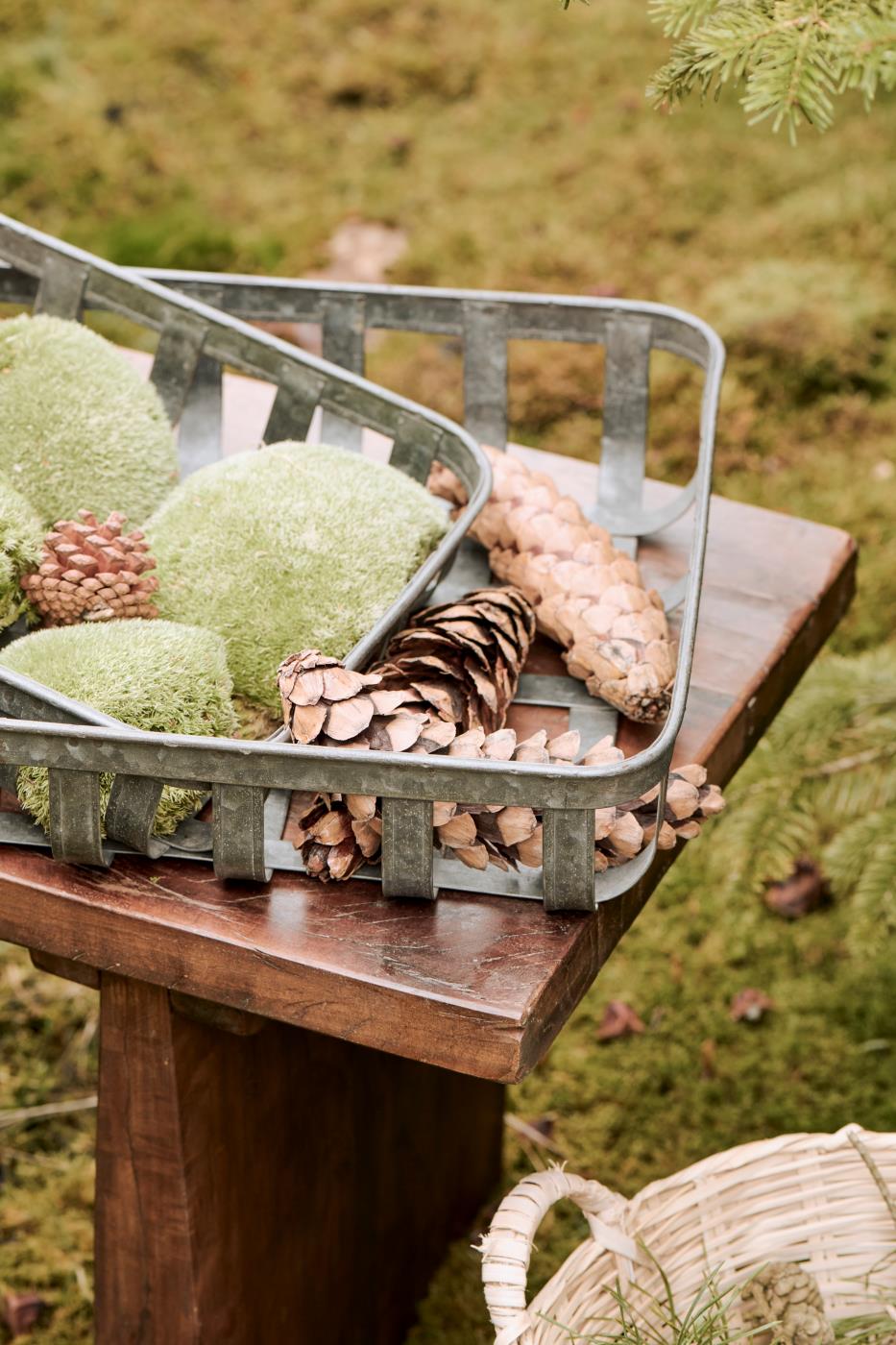 Denne lækre zink kurv fra Ib Laursen er perfekt til efterårsdekorationer. Brug den som en dekorativ opbevaring på spisebordet med krukker og lys, eller på en bænk udendørs med mos, kogler og lys.