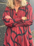 Denne super fine kjole er den perfekte kjole i garderoben. Kjolen har nogle super fine smock detaljer foran og bagpå, som gør at kjolen sidder utroligt godt. Kjolen har rund hals med v-udskæring og så går smock detaljen igen i ærmet, hvilket gør at ærmerne nemt og elegant kan trækkes op til en kortere version.