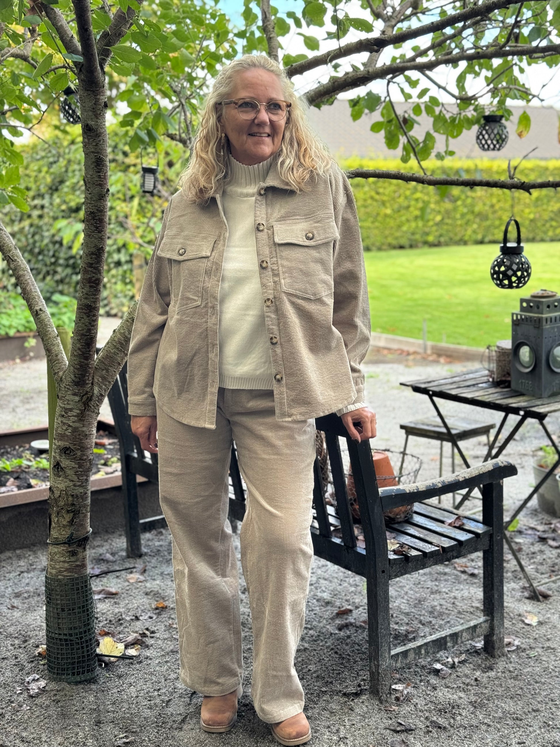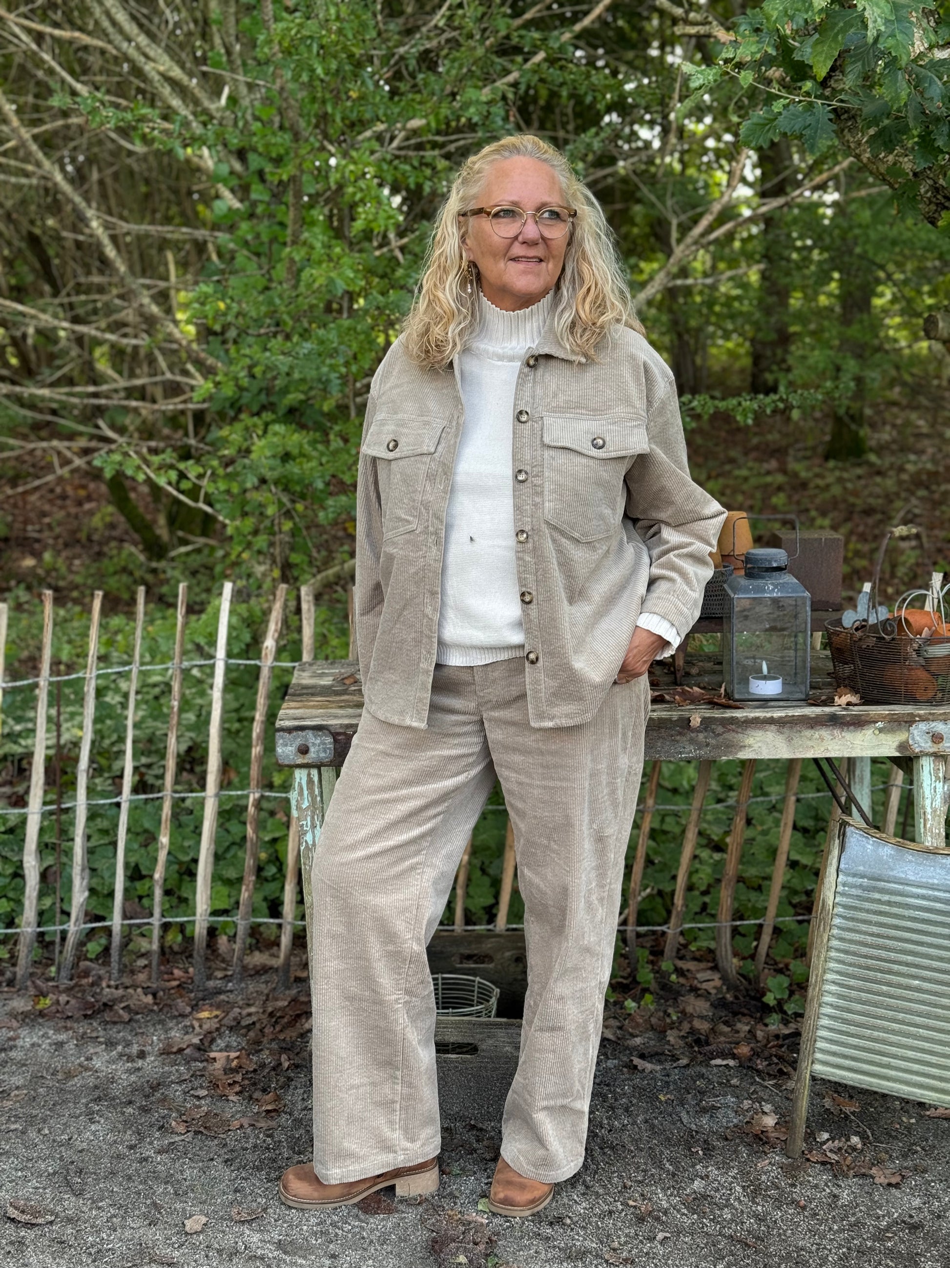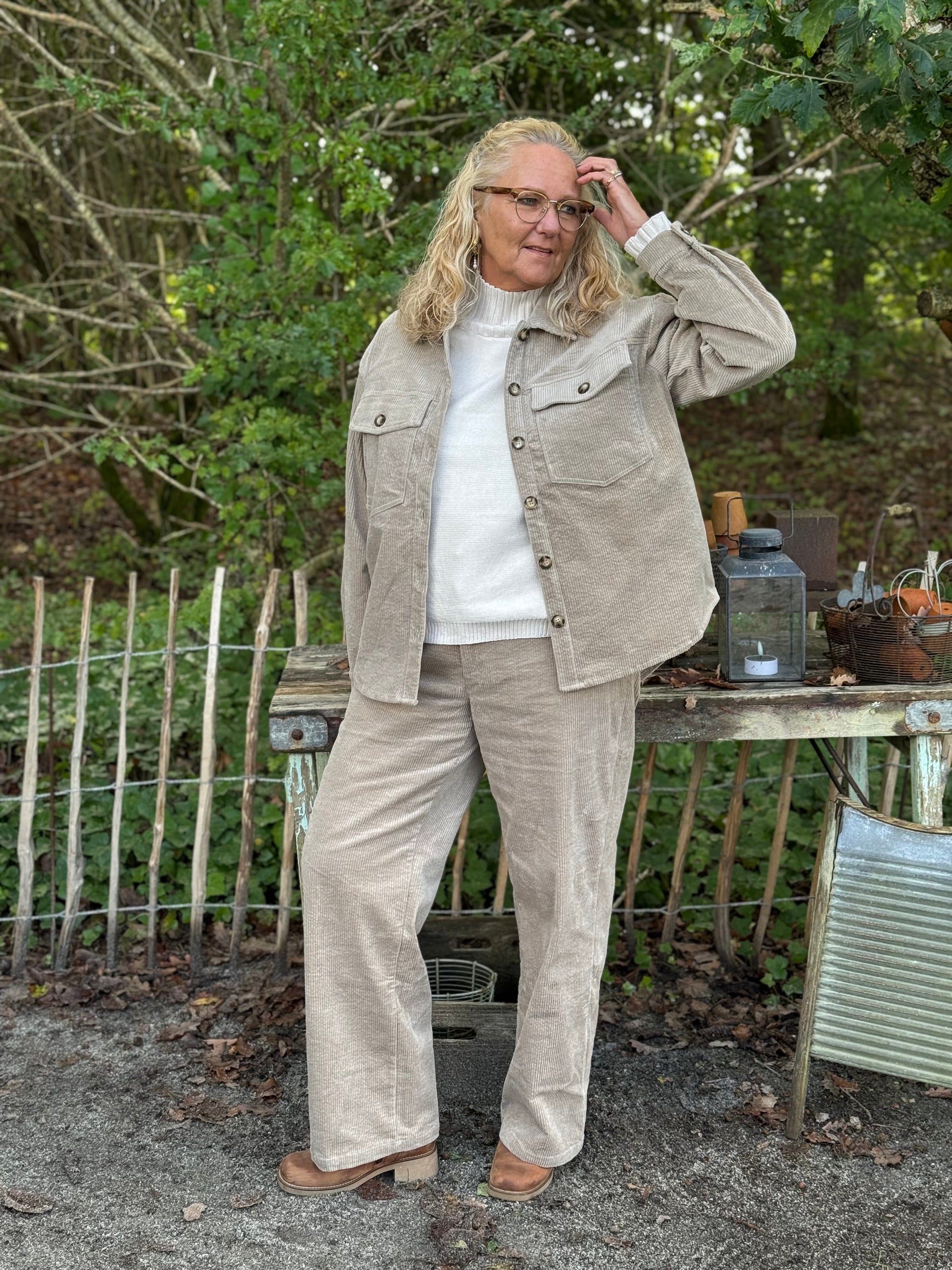 Denne elegante buks fra Isay er højtaljet med et straight fit med vidde i benene. Materialet på buksen er i fløjl, hvilket giver dem et fint feminint udtryk. Buksen har lommer i begge sider samt to lommer bagpå.