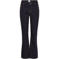 Como Flare Button Jeans er den perfekte jeans til kvinden, der ønsker en elegant jeans, som sidder komfortabelt. Bukserne har en høj talje og flare i benene De er lavet af et lækkert blødt og strækbart materiale. Som en fin detalje har bukserne knapper ved hoften i stedet for lommer, hvilket giver dem et feminint udtryk.