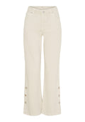 Como Twill Button Pant kombinerer klassiske denimdetaljer med et feminint twist. Det flatterende flare fit sidder tæt om hofterne og lårene og får ekstra vidde fra knæet ned. De dekorative knapper ved anklerne tilfører et unikt udtryk. Buksen er fremstillet i en blød bomuldsblanding med stretch, som sikrer høj komfort og god bevægelsesfrihed hele dagen. Fast linning med bæltestropper, klassisk 5-pocket design og lynlåslukning med knap fuldender looket.