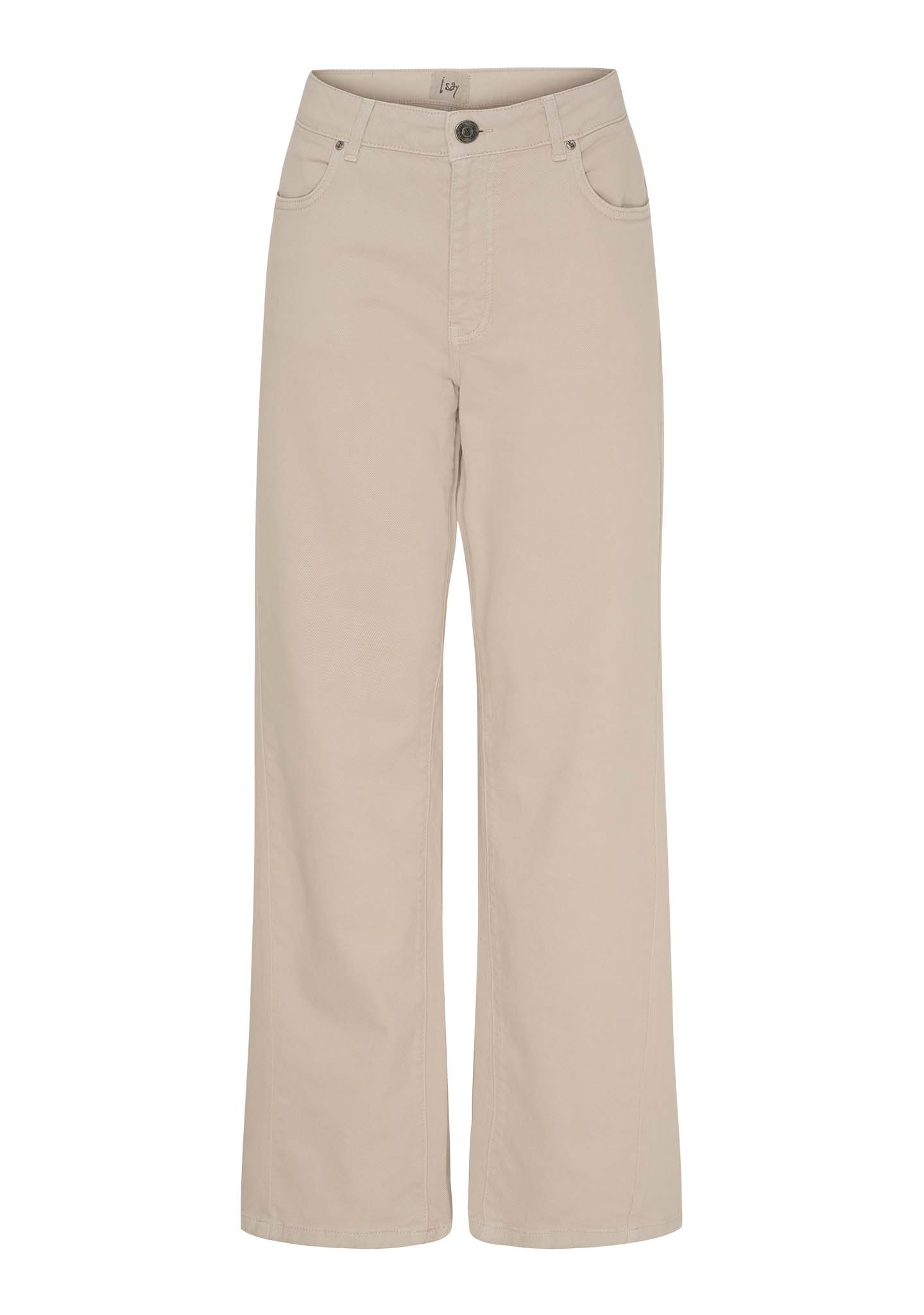 Como Twill Pant i denne beige nuance fra Isay vil pifte enhver jeans garderobe op. Isay kombinerer et tidløst design med høj komfort. Den højtaljede pasform og brede, lige ben skaber et afslappet men stilfuldt look. De klassiske 4 lommer og den faste linning med bæltestropper giver et rent og enkelt udtryk, mens bomuldsblandingen med stretch sikrer bevægelsesfrihed og komfort hele dagen.