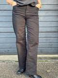Prøv noget nyt med disse lækre Como Twill Wide Pant med vidde i benene. Bukserne har det klassiske denim look med 5-pocket design og en fast linning med bæltestropper. De har en mellemhøj talje og sammen med vidden i buskerne, fremhæver det din talje. Bukserne er lækre og behagelige at have på.