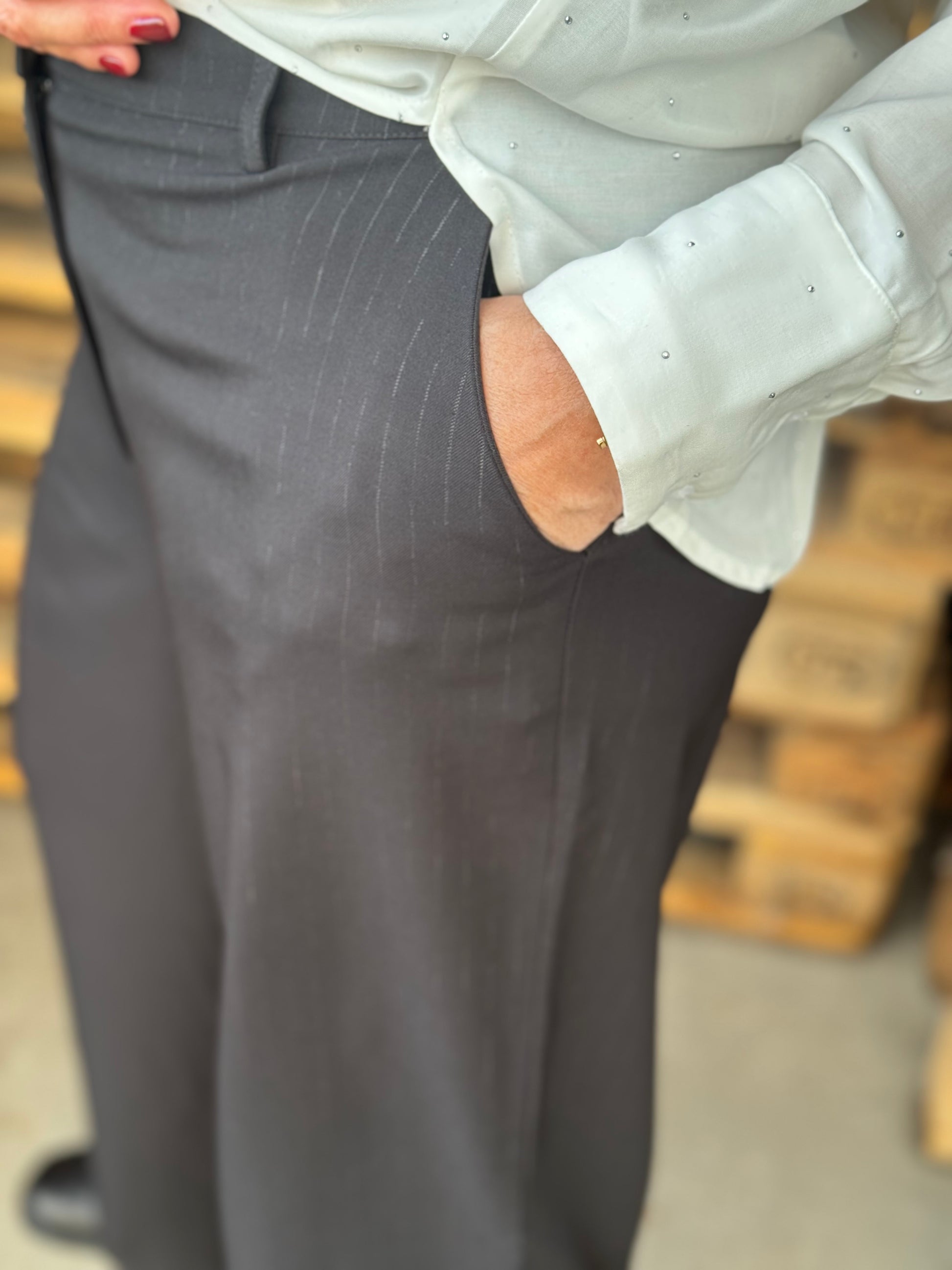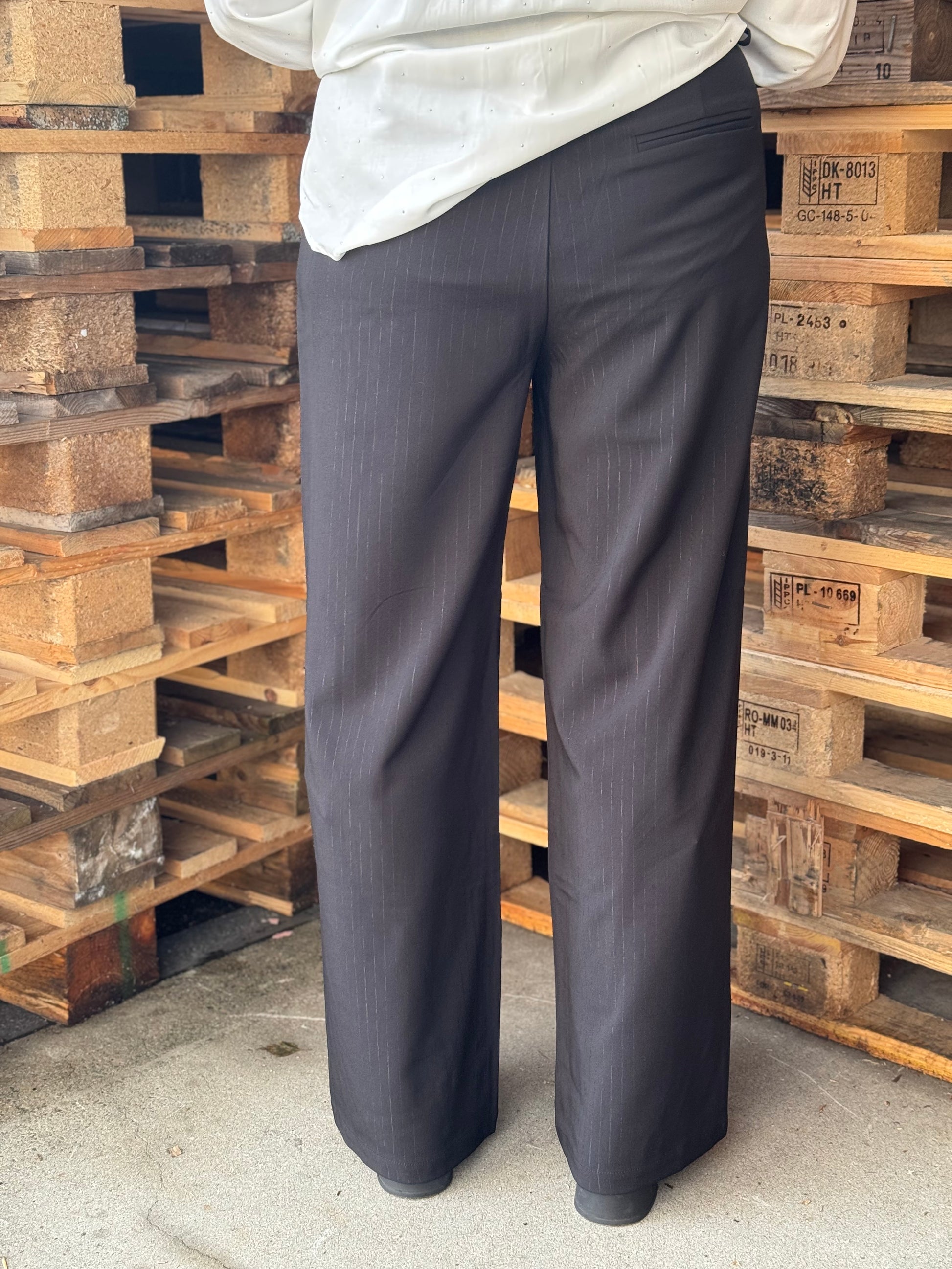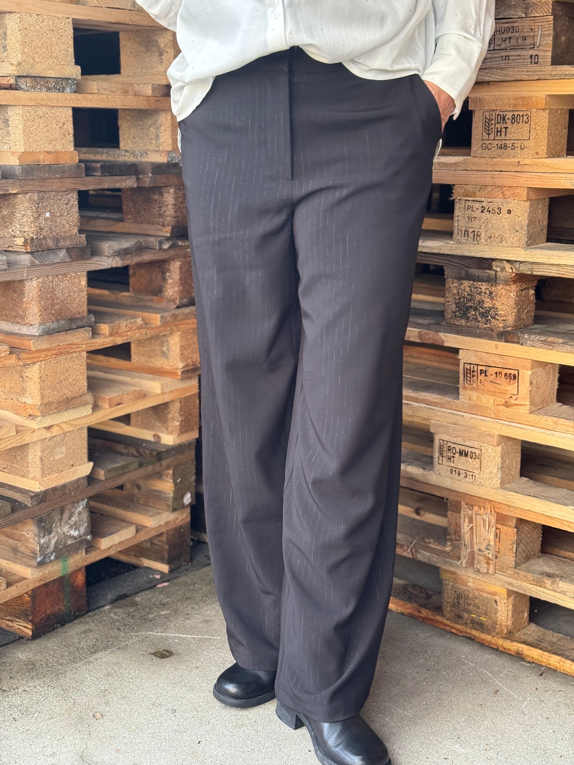 Med Felicia Pant får du en klassisk smuk højtaljet buks som kan pifte et hvert outfit op. Bukserne har fast linning med bælte stropper og skjult hægtelukning. Der er en god vidde i benene, som falder utroligt smukt, samt skrålommer i siderne og paspolerede baglommer.