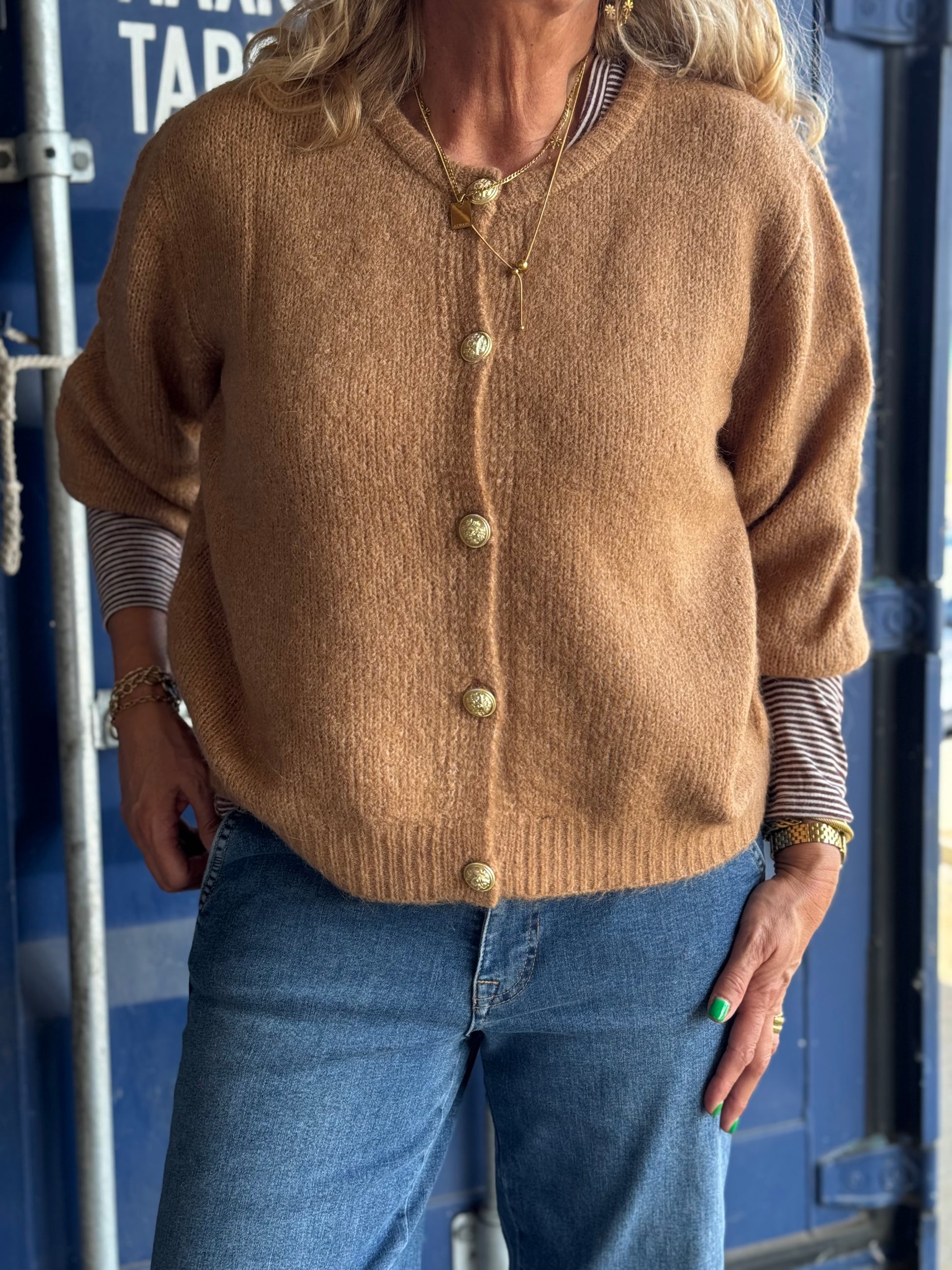 En lækker klassisk cardigan fra Isay, som kan redde en hver tøjkrise. Cardiganen har en fin rund halsudskæring og lukkes med de smukkeste knapper. Cardiganen har en bred ribstykke ved ærmet.