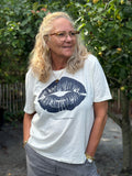 Lækker klassisk T-shirt med et moderne twist som læbeprintet foran. T-shirten har en rundhals udskæring og korte ærmer.