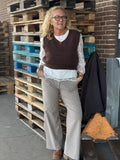 Med Rimini Long Pant får du en klassisk smuk buks som kan pifte et hvert outfit op. Bukserne har fast linning med bælte stropper og lukkes med to knapper og lynlås. Der er en god vidde i benene, som falder utroligt smukt, samt skrålommer i siderne og paspolerede baglommer.