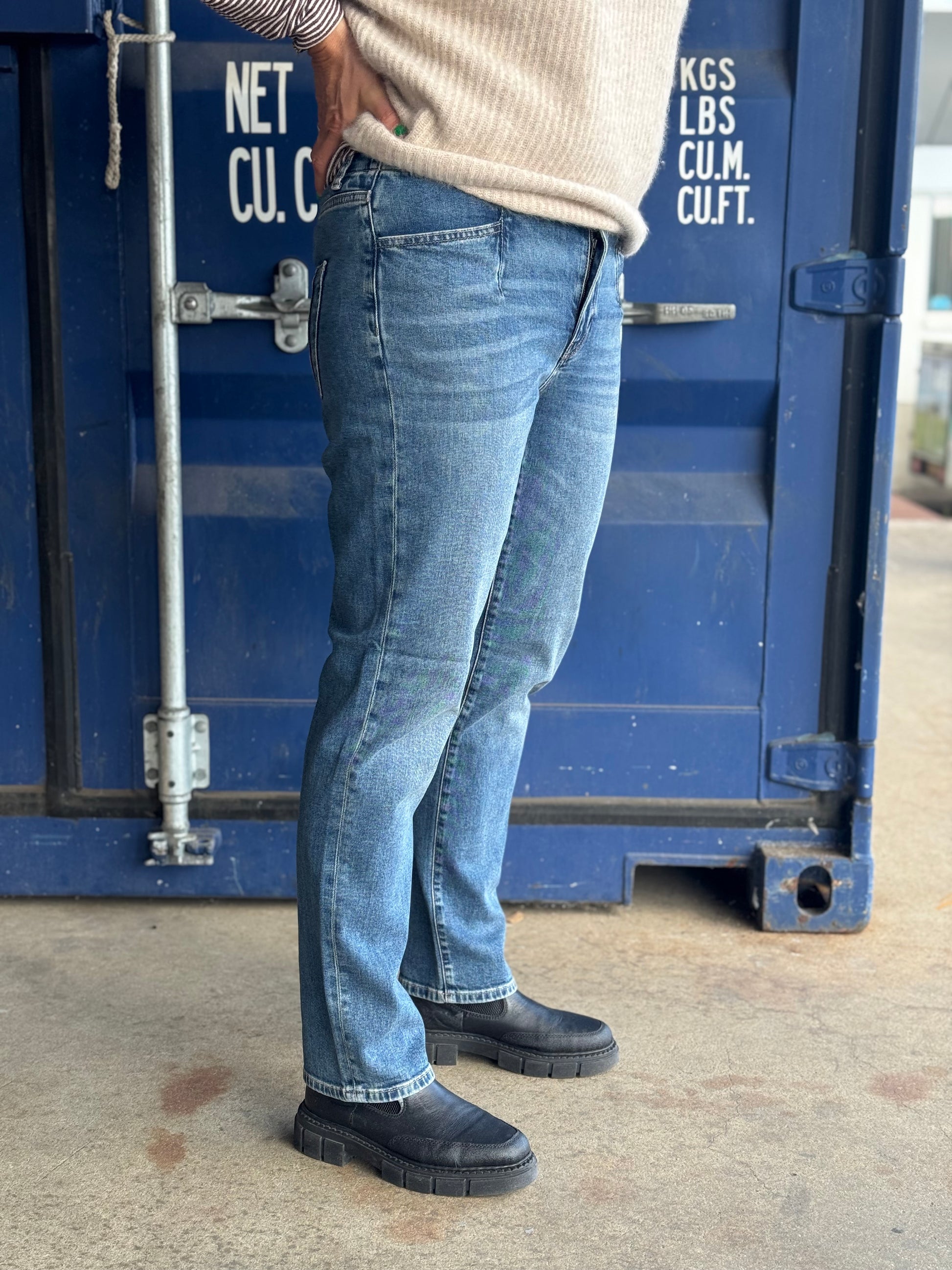 Med Torino Stretch Jeans får man en moderne jeans med et autentisk vask. Jeansene har et klassisk snit med fastlinning, bæltestropper og saddelback. Jeansene har en mellemhøjtalje og lige ben, hvilket giver en flatterende silhuet.