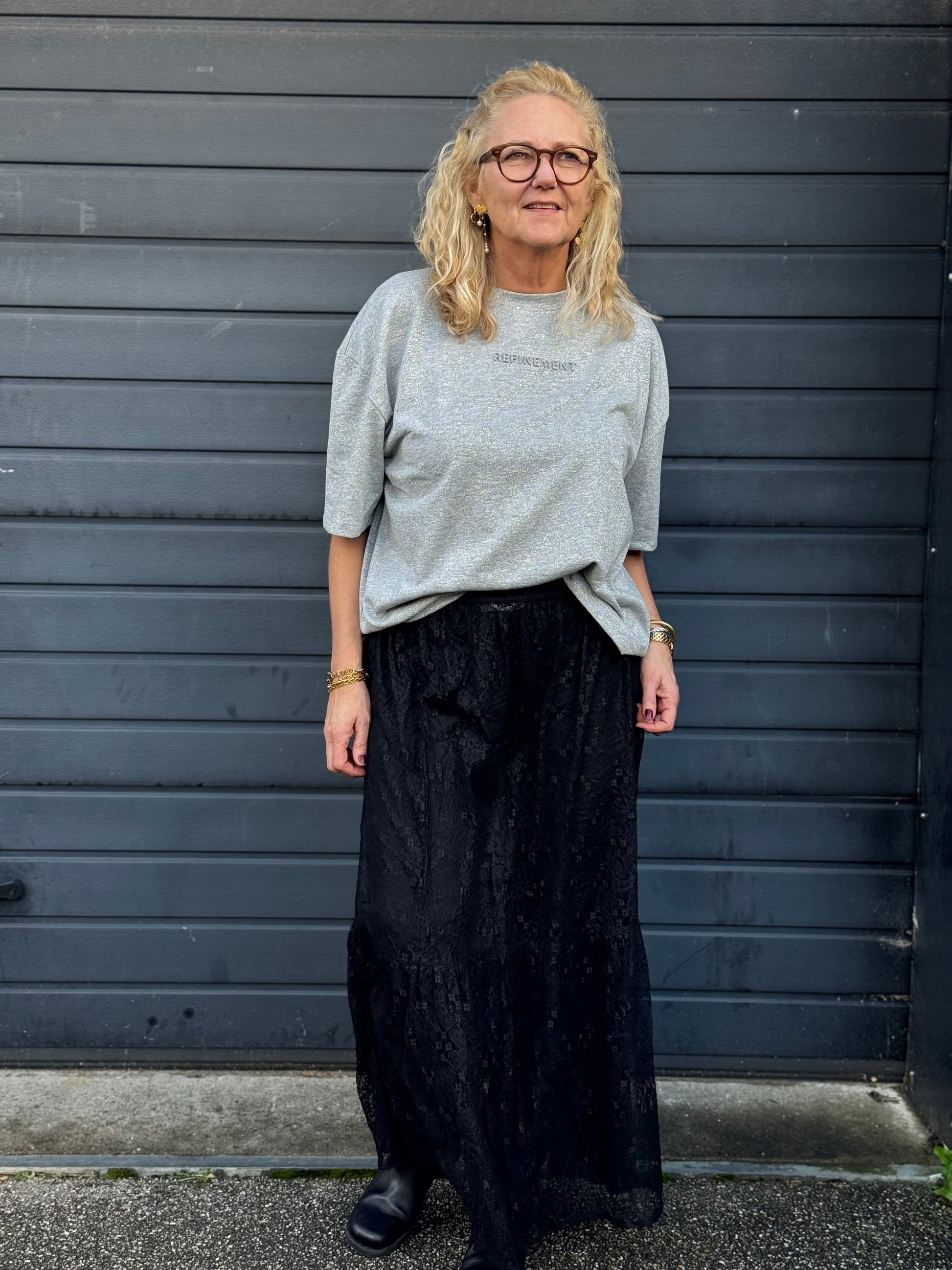 Cool oversize T-shirt med en tynd metallictråd som giver den et elegant udtryk. T-shirten har en rund hals og lange t-shirt ærmer.
