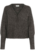 Denne lækre bløde cardigan er perfekt til de kølige dage. Cardiganen har en fin v-udskæring og lukkes foran med knapper. Den har et lang rib stykke i ærmerne, som giver et cool udtryk.