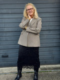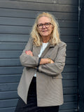 Denne lækre faconsyet blazer fra Kaffe er et must have til efteråret. Blazeren har en klassisk krave og bred revers, samt dobbelt knap lukning. Blazeren har lommer med klap foran.
