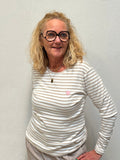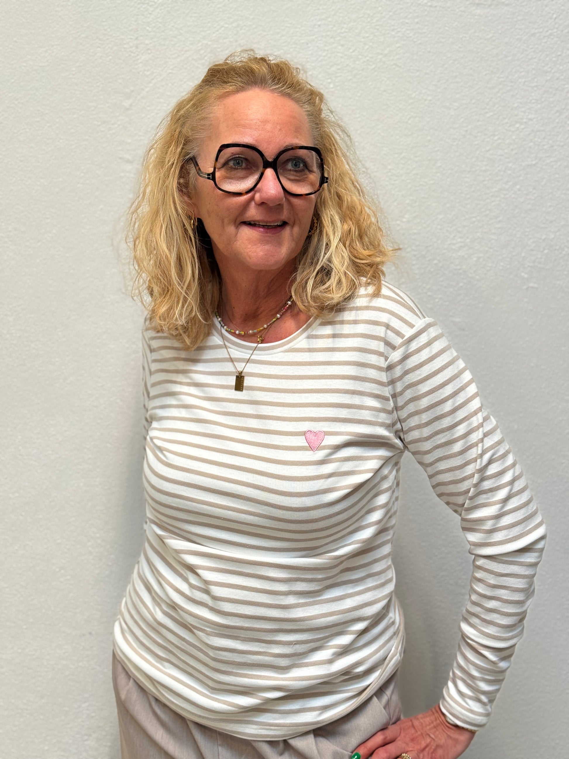 Super fin stribet langærmet T-shirt, med et sødt lille broderet hjerte. T-shirten er helt klassisk med rund hals og lange ærmer,