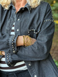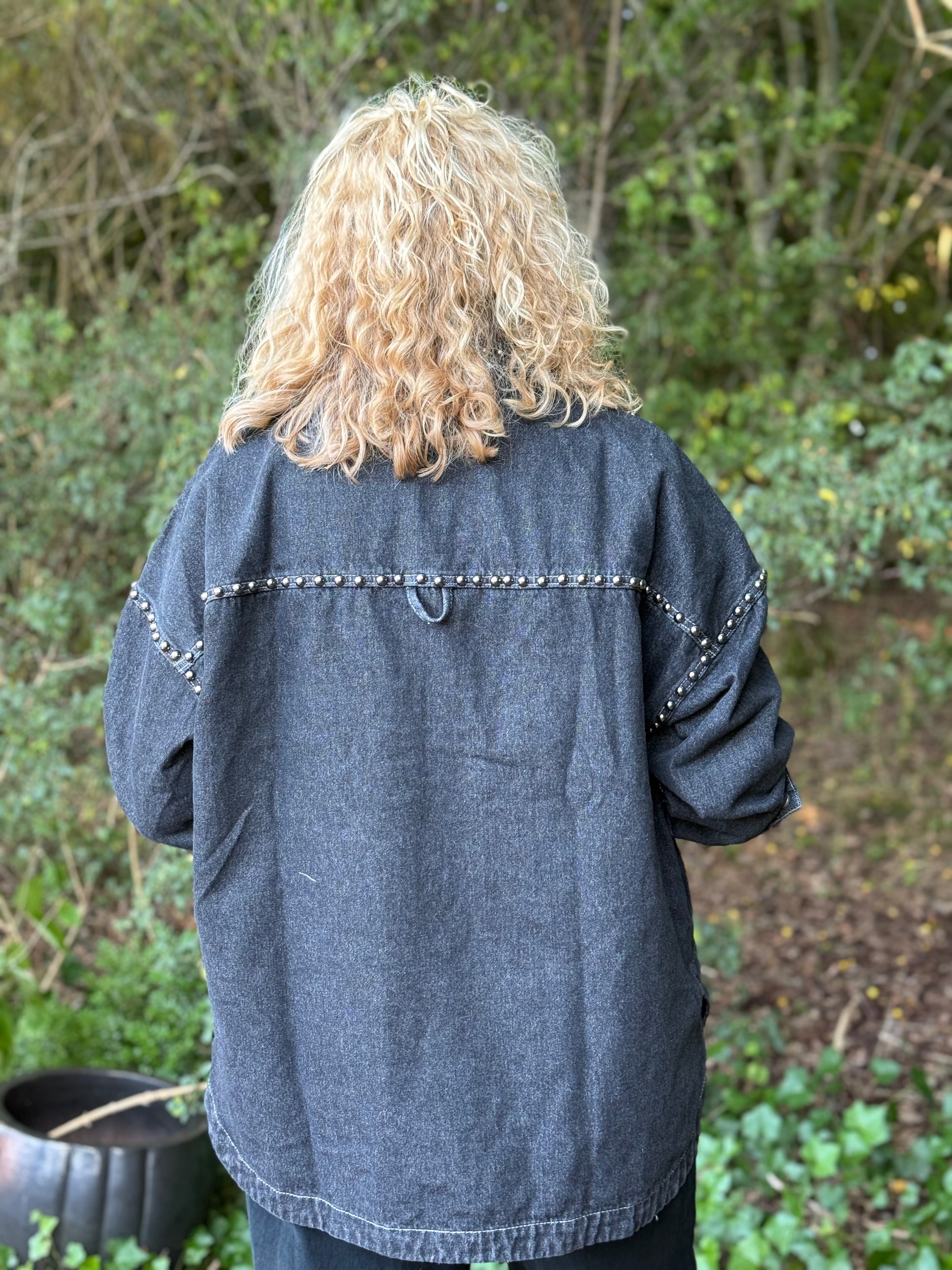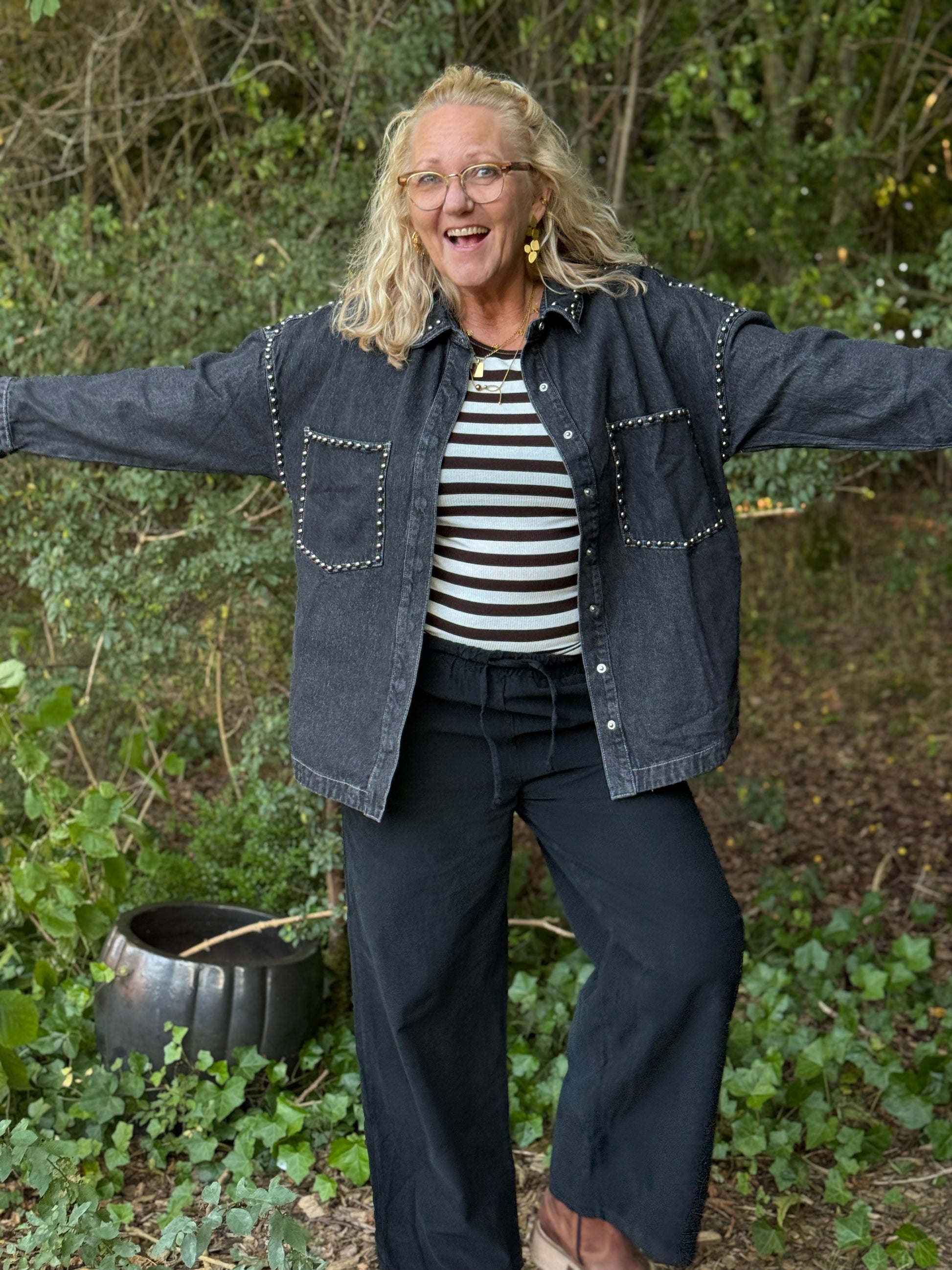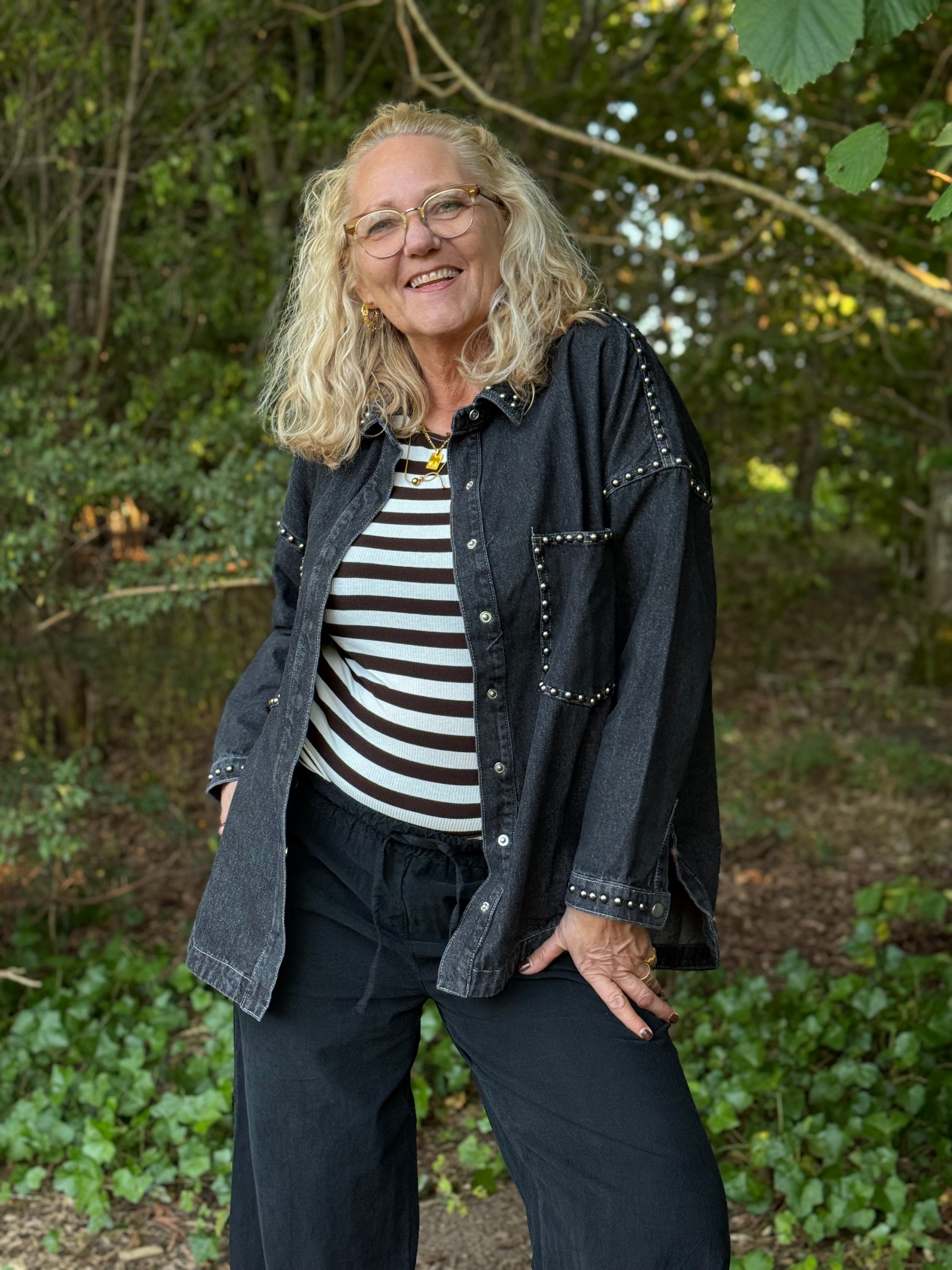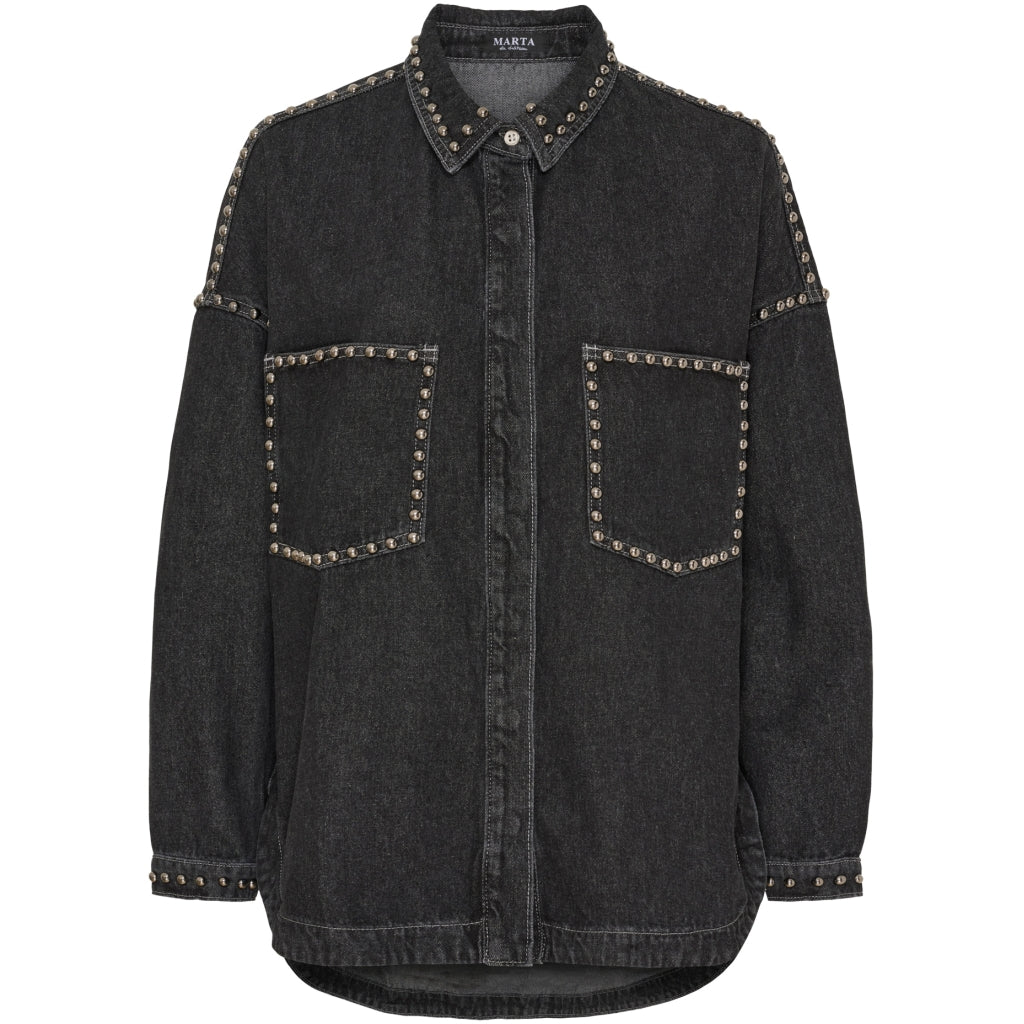 Denne lækre skjorte fra Marta er fyldt med smukke detaljer, som de fine perler omkring lommerne, krave og skuldre. Skjorten har brystlommer og en lille slids i siden.