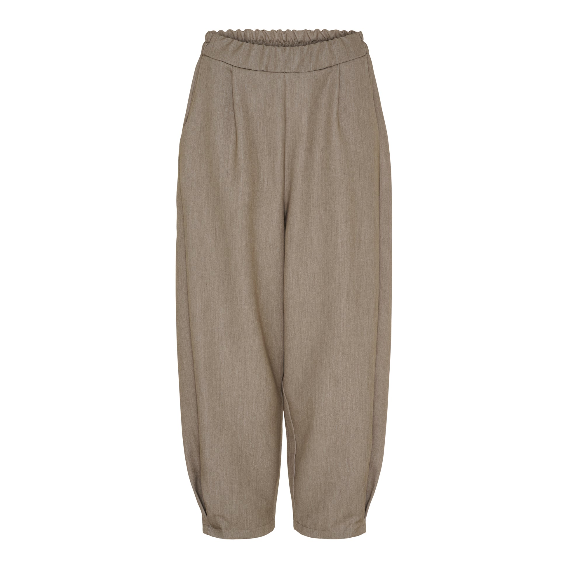 Disse lækre bukser fra Marta er i den smukkeste farve. Bukserne har elastik i taljen, hvilket giver en god komfort.. Foran har bukserne skrålommer. Buksen har brede i benene som snævre en smule ind nederst.