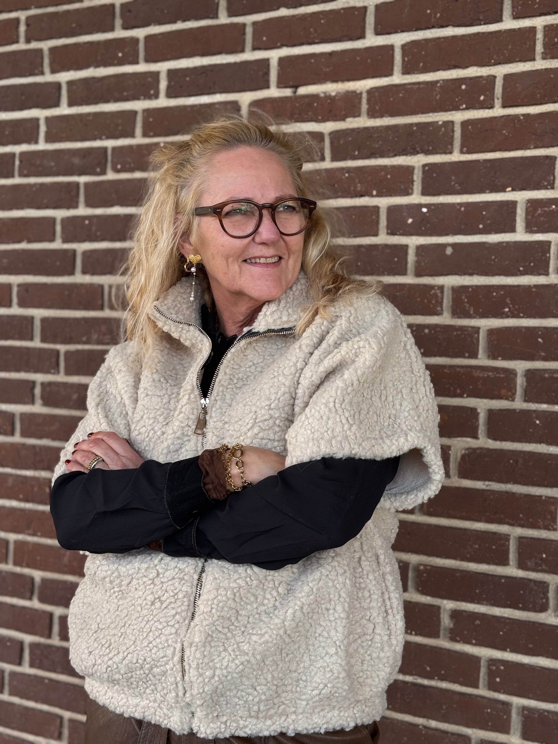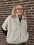 Dejlig blød teddy vest som går op i halsen, hvilket gør den perfekt til de kølige dage. Vesten er med korte ærmer, samt lynlås og har lommer i siden.