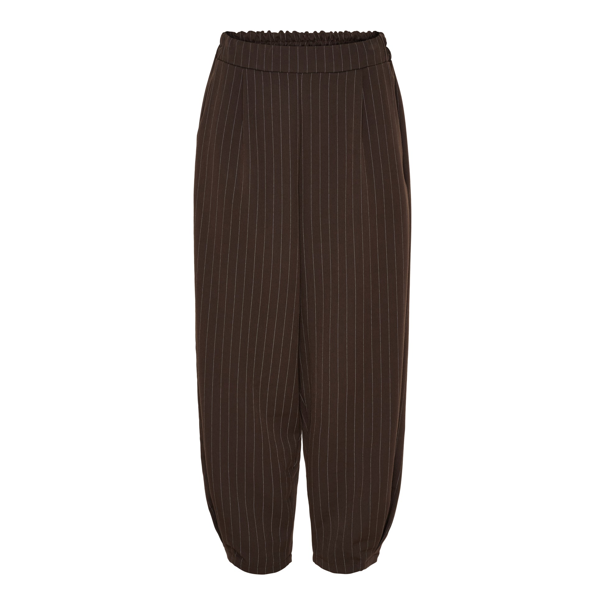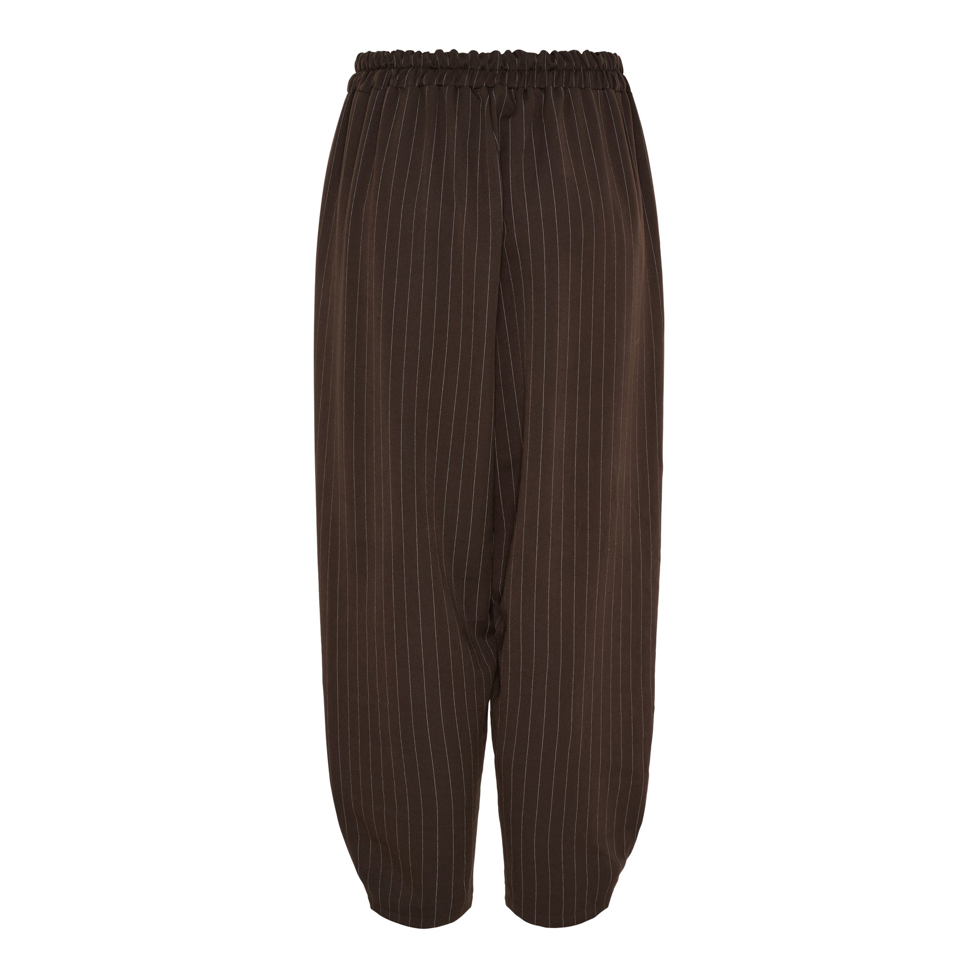 Disse lækre bukser fra Marta har den fineste nålestrib Bukserne har elastik i taljen, hvilket gør den behagelige at have på. Foran har bukserne skrålommer. Buksen har brede i benene som snævre en smule ind nederst.