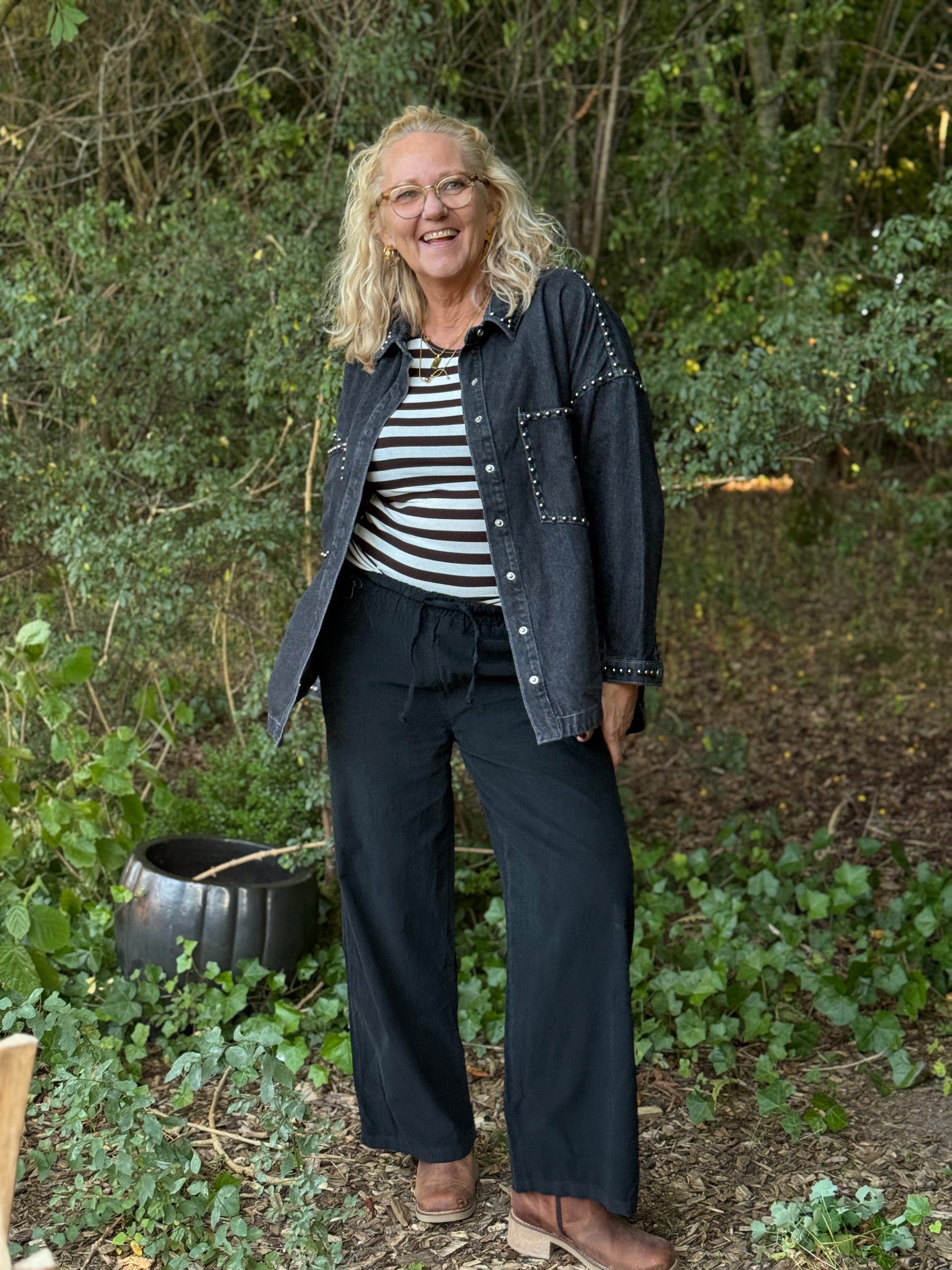 Disse lækre bukser med bredde ben fra Marta er fyldt med lækre detaljer. Bukserne er med elastik i taljen, som er med til at give komfort hele dagen - og har skrålommer i siderne.