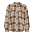 Denne lette, ternede bluse i bløde beige- og bruntoner kombinerer komfort med tidløst design. Perfekt til både hverdag og arbejde med sin afslappede pasform og elegante gennemknapning.