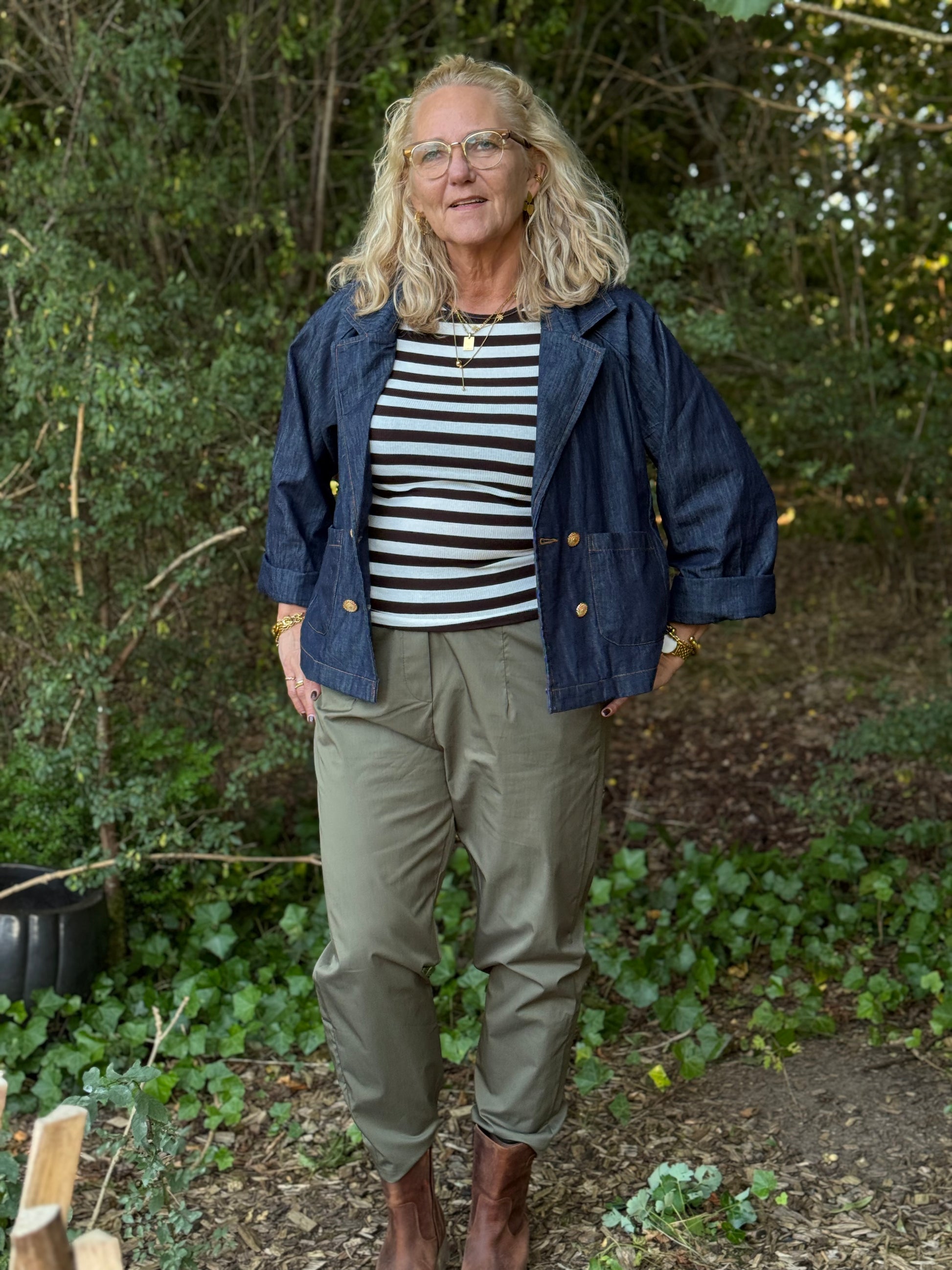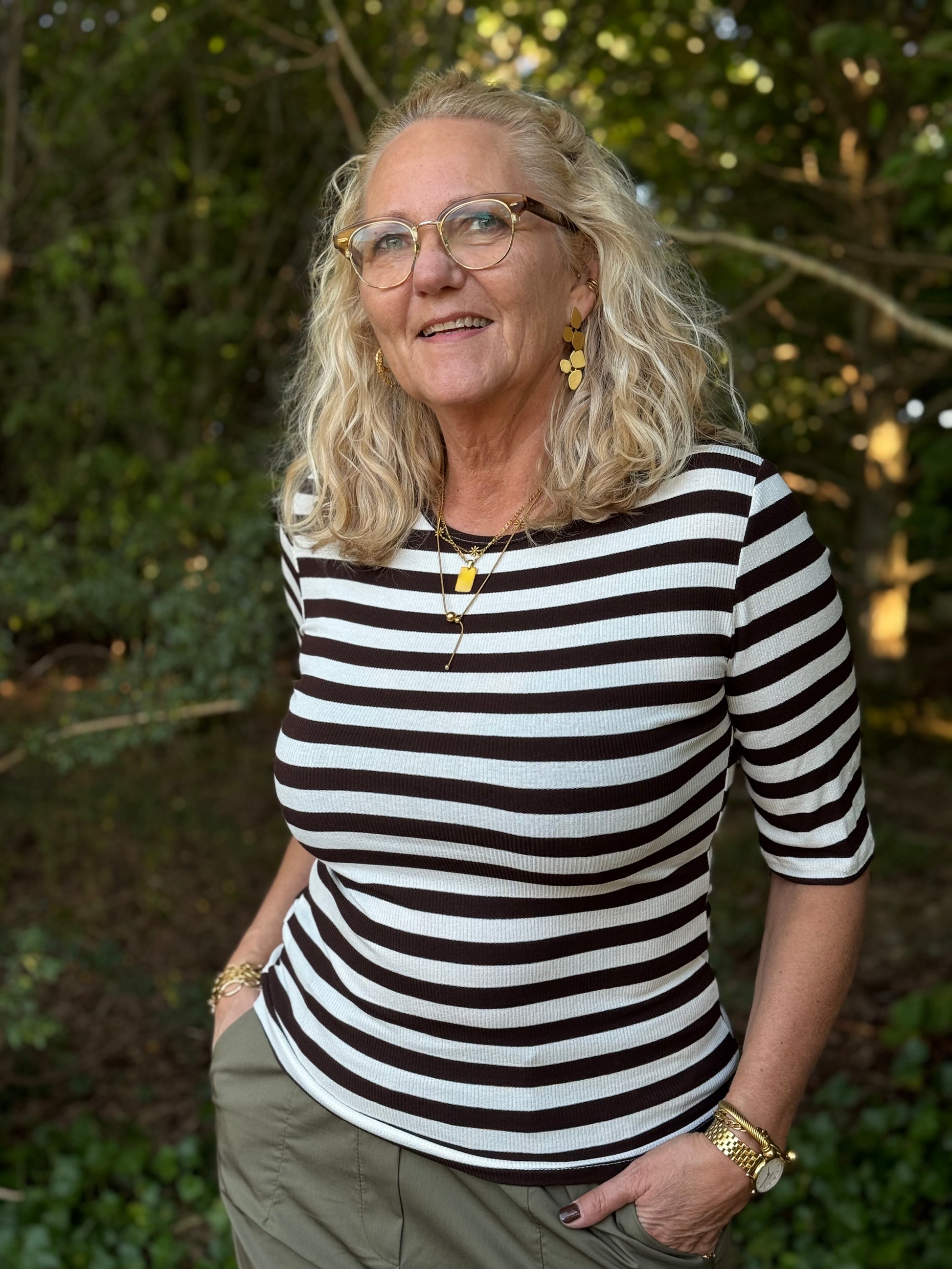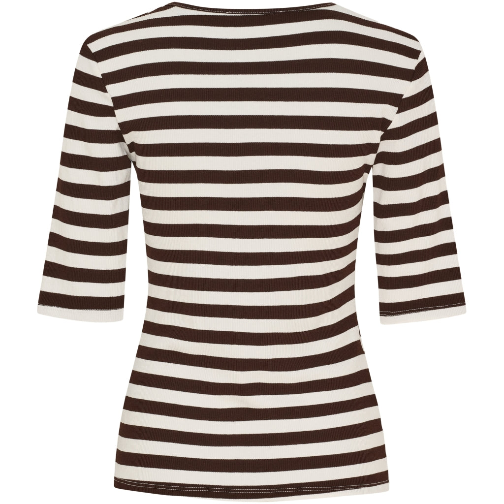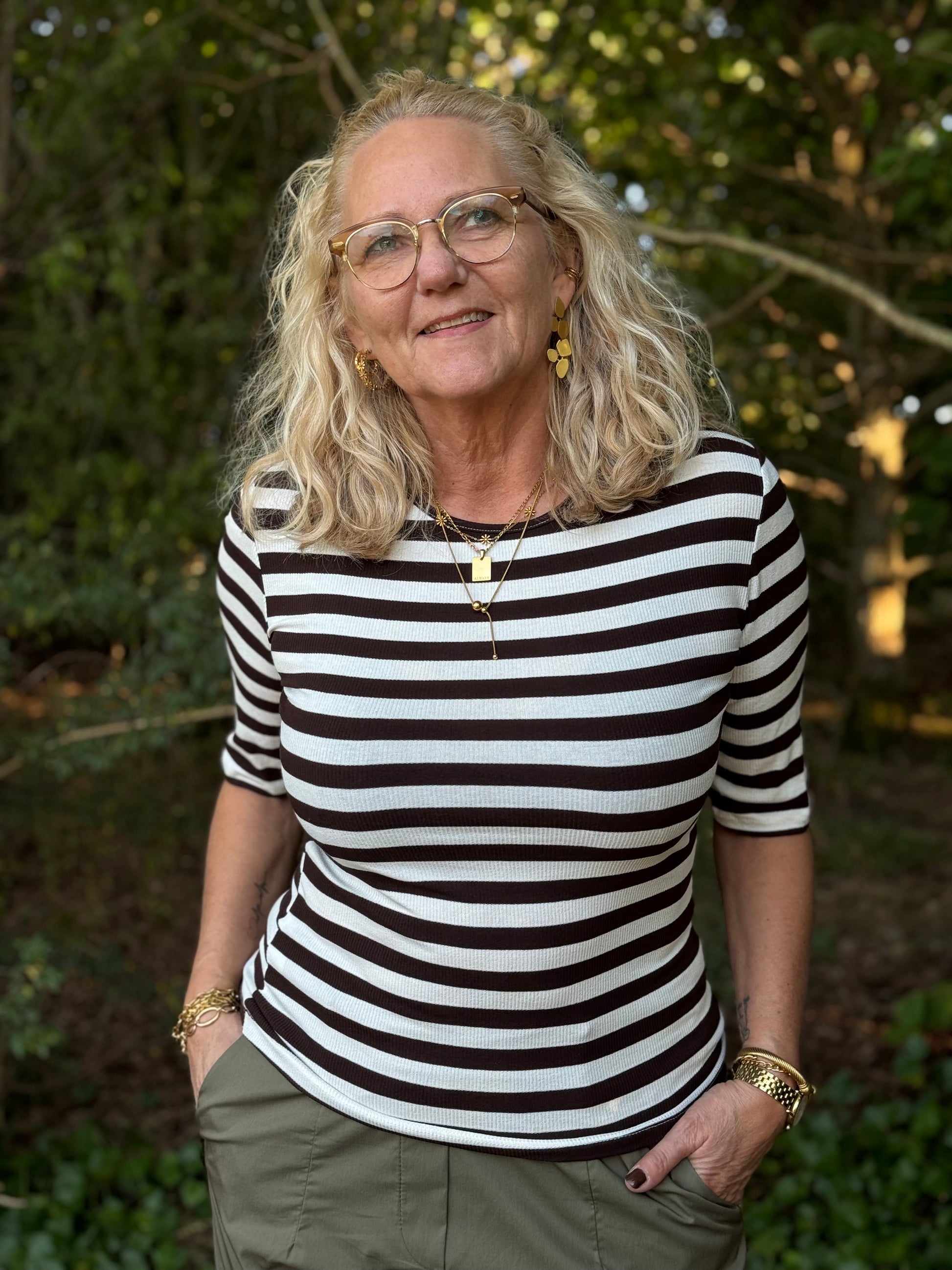 Super fin stribet t-shirt fra Marta perfekt til enhver lejlighed. T-shirten har en fin rund hals, mens ærmet går til omkring albuen.