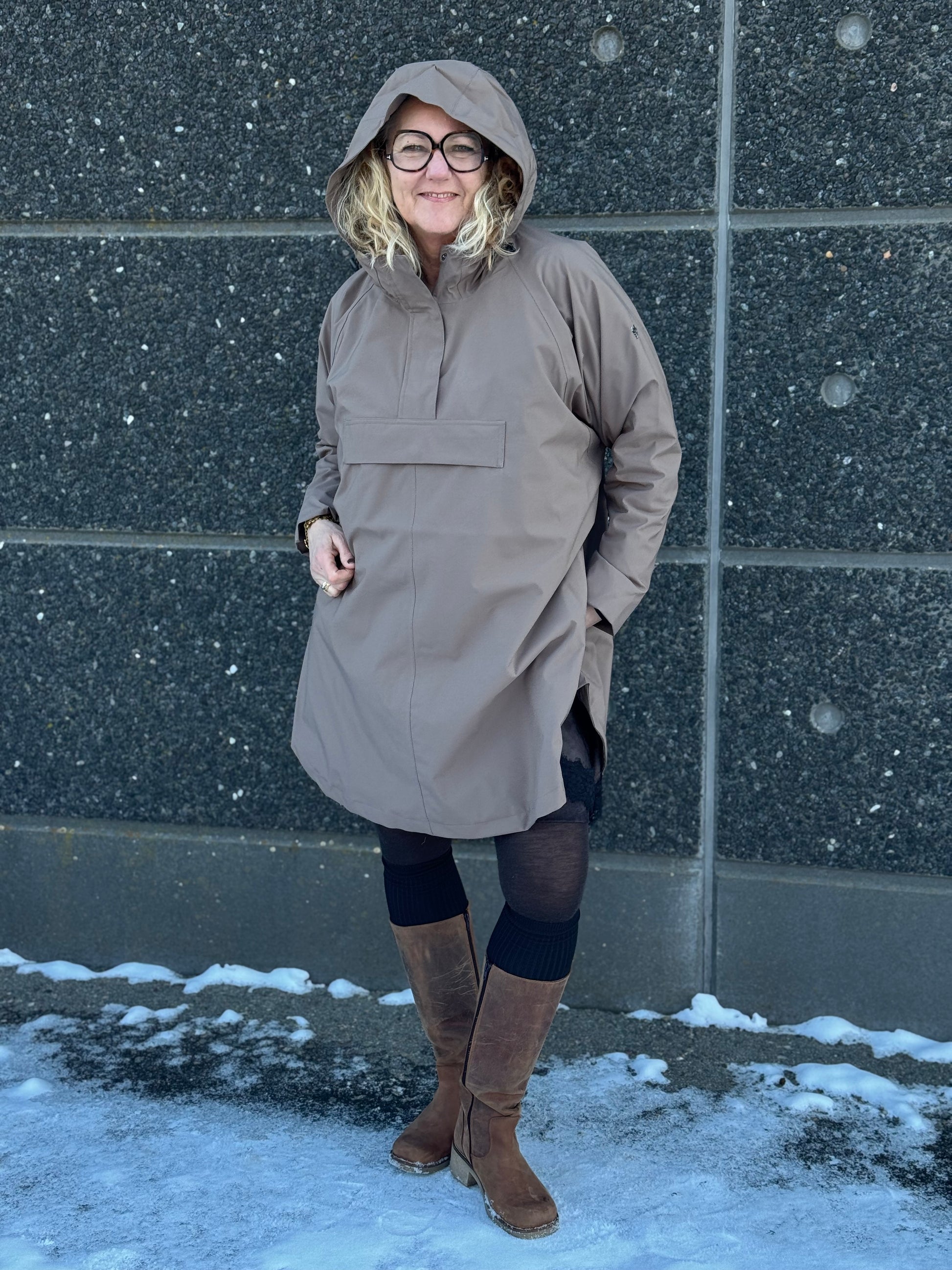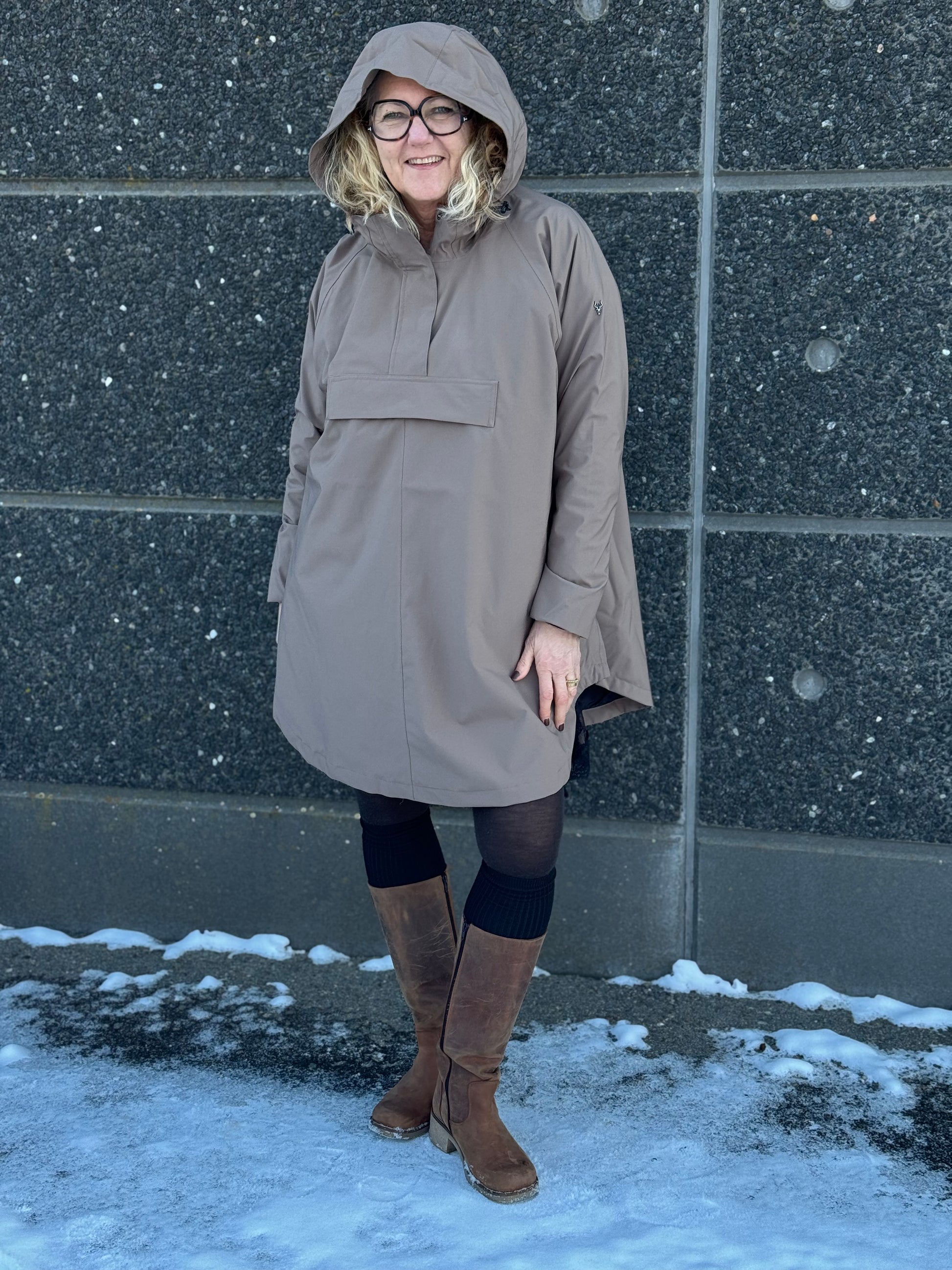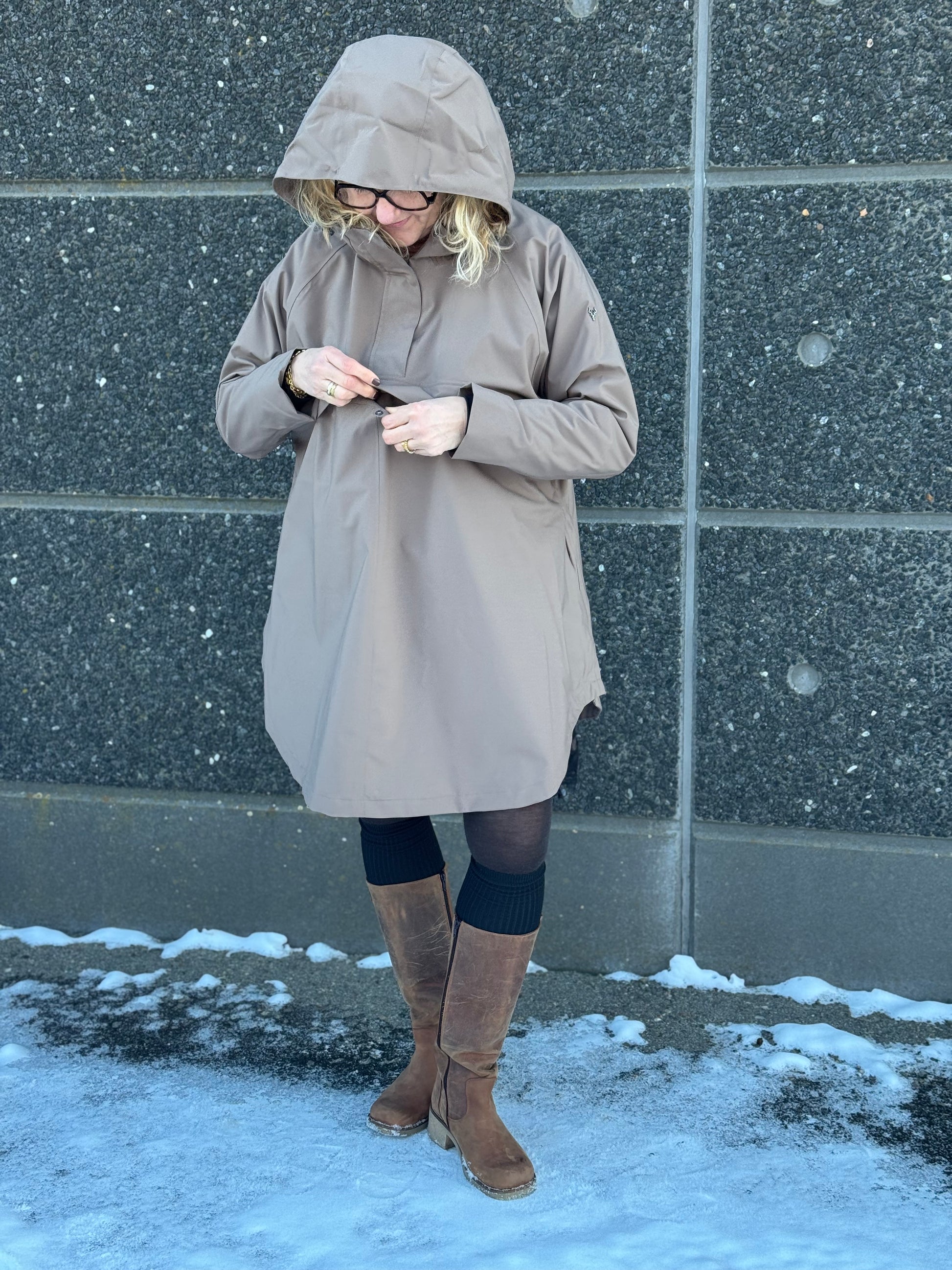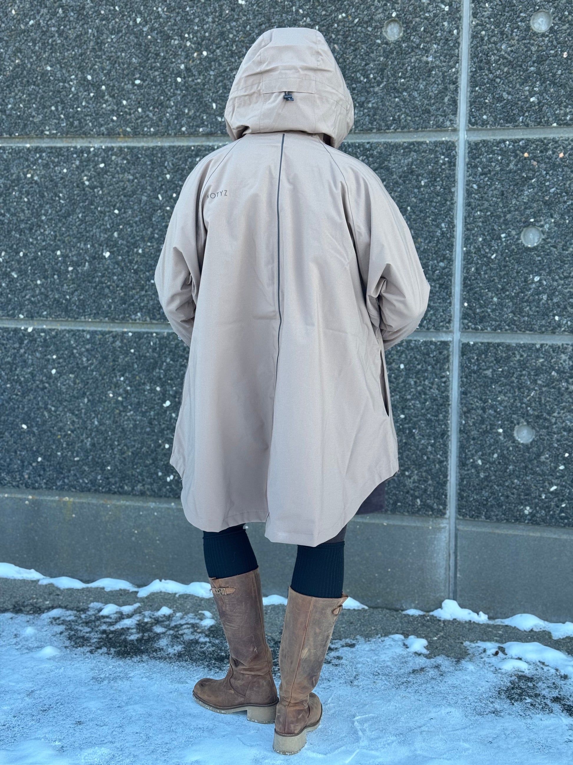 Denne lækre poncho er uundværlig - da den både er vand- og vindtæt med et vandsøjletryk på 10.000 mm. Foran har den en praktisk lille lomme, samt trykknapper så den kan lukkes helt til. Ponchoen har desuden en hætte.
